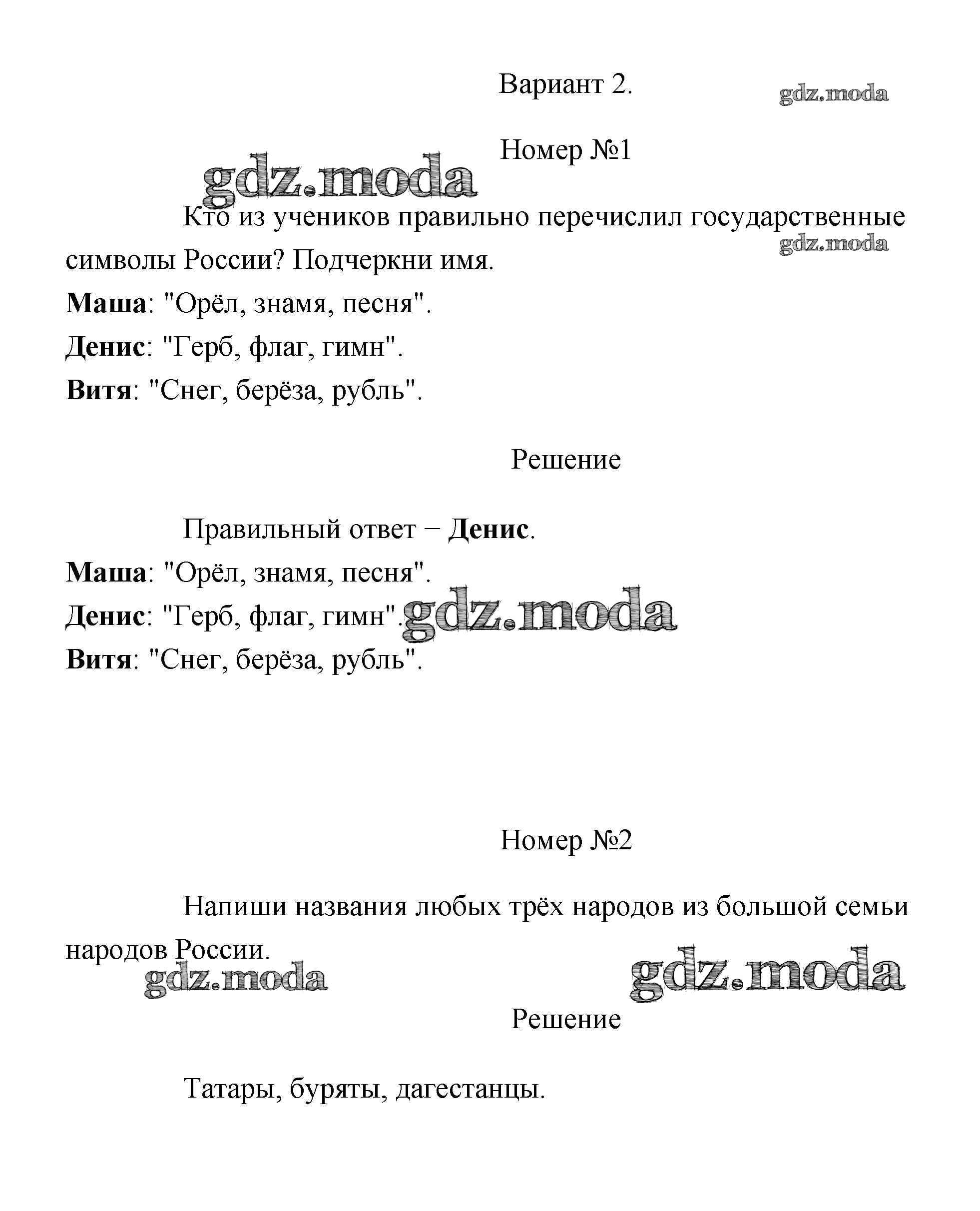 ГДЗ решение к заданию № 2 Окружающий мир 2 класс проверочные работы Плешаков Просвещение 2018 ФГОС бесплатно на гдз.мода!