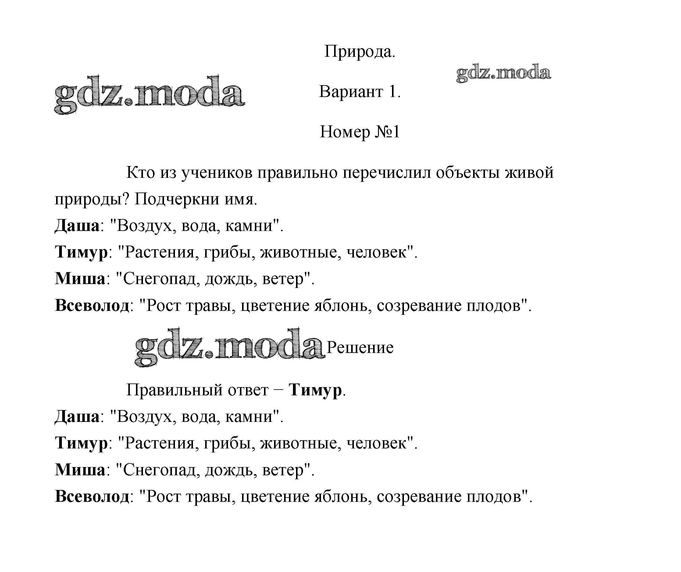 ГДЗ решение к заданию № 1 Окружающий мир 2 класс проверочные работы Плешаков Просвещение 2018 ФГОС бесплатно на гдз.мода!