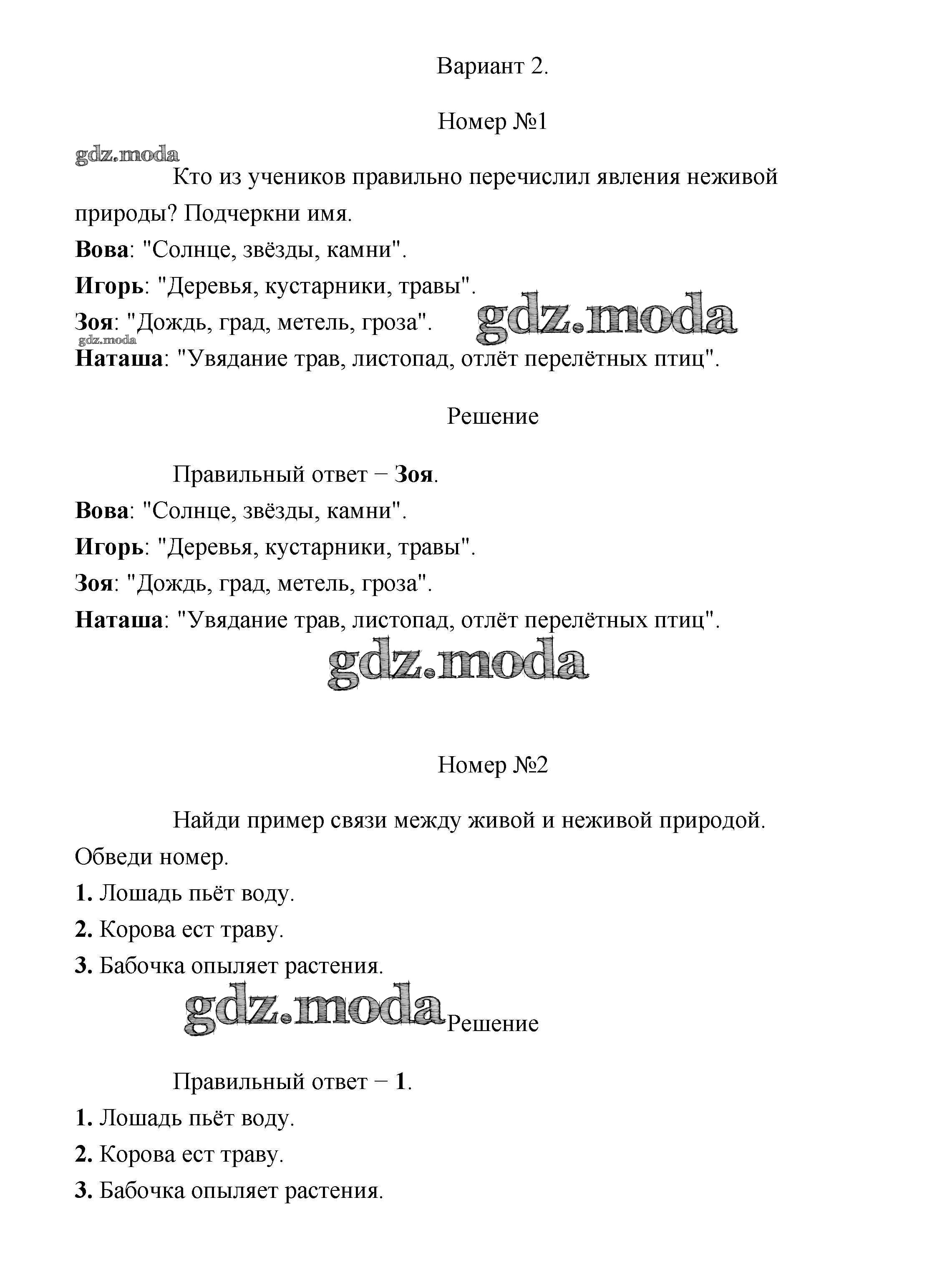 ГДЗ решение к заданию № 2 Окружающий мир 2 класс проверочные работы Плешаков Просвещение 2018 ФГОС бесплатно на гдз.мода!