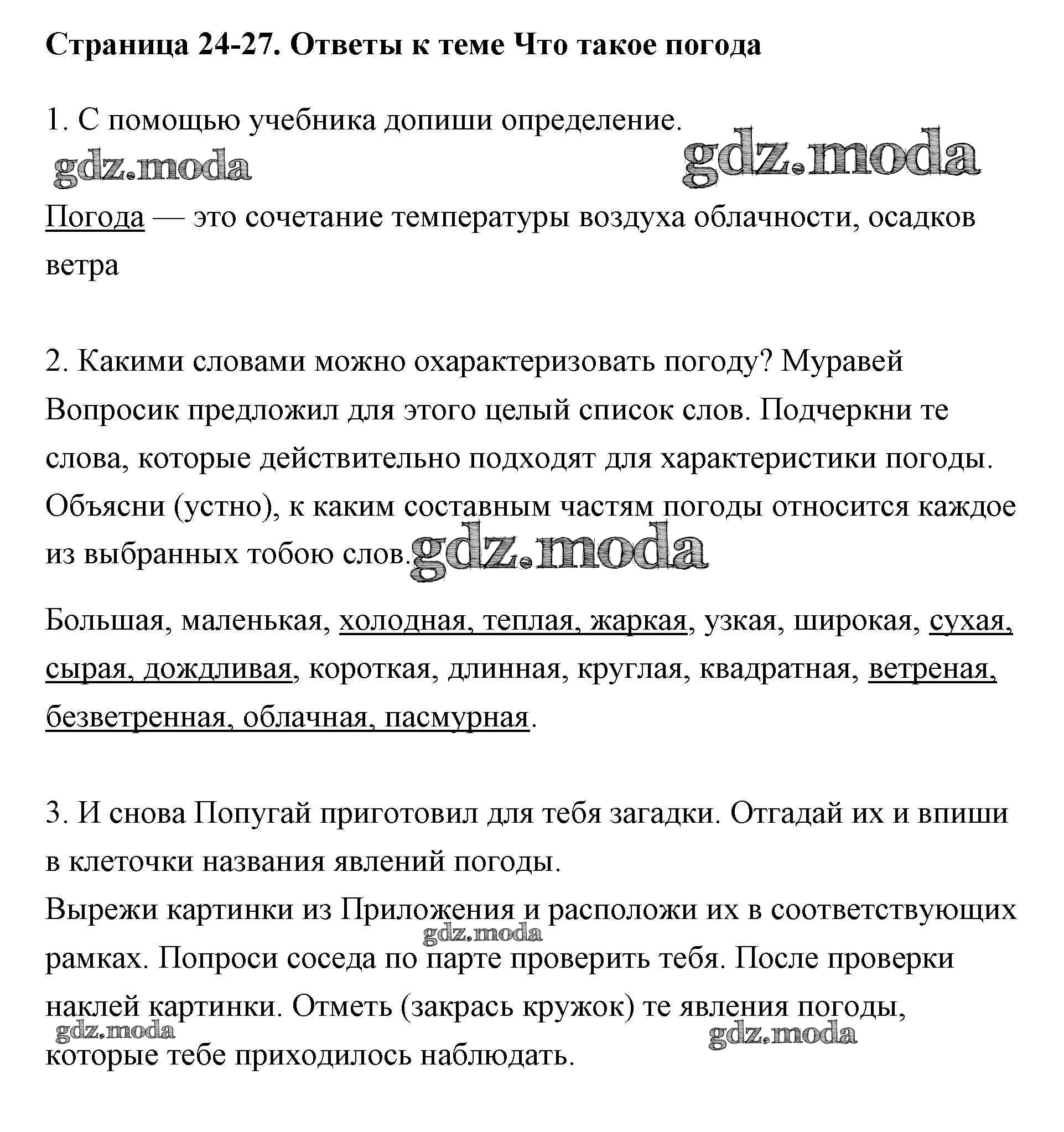 ОТВЕТ на задание № 24-27 Рабочая тетрадь по Окружающему миру 2 класс Плешаков Школа России
