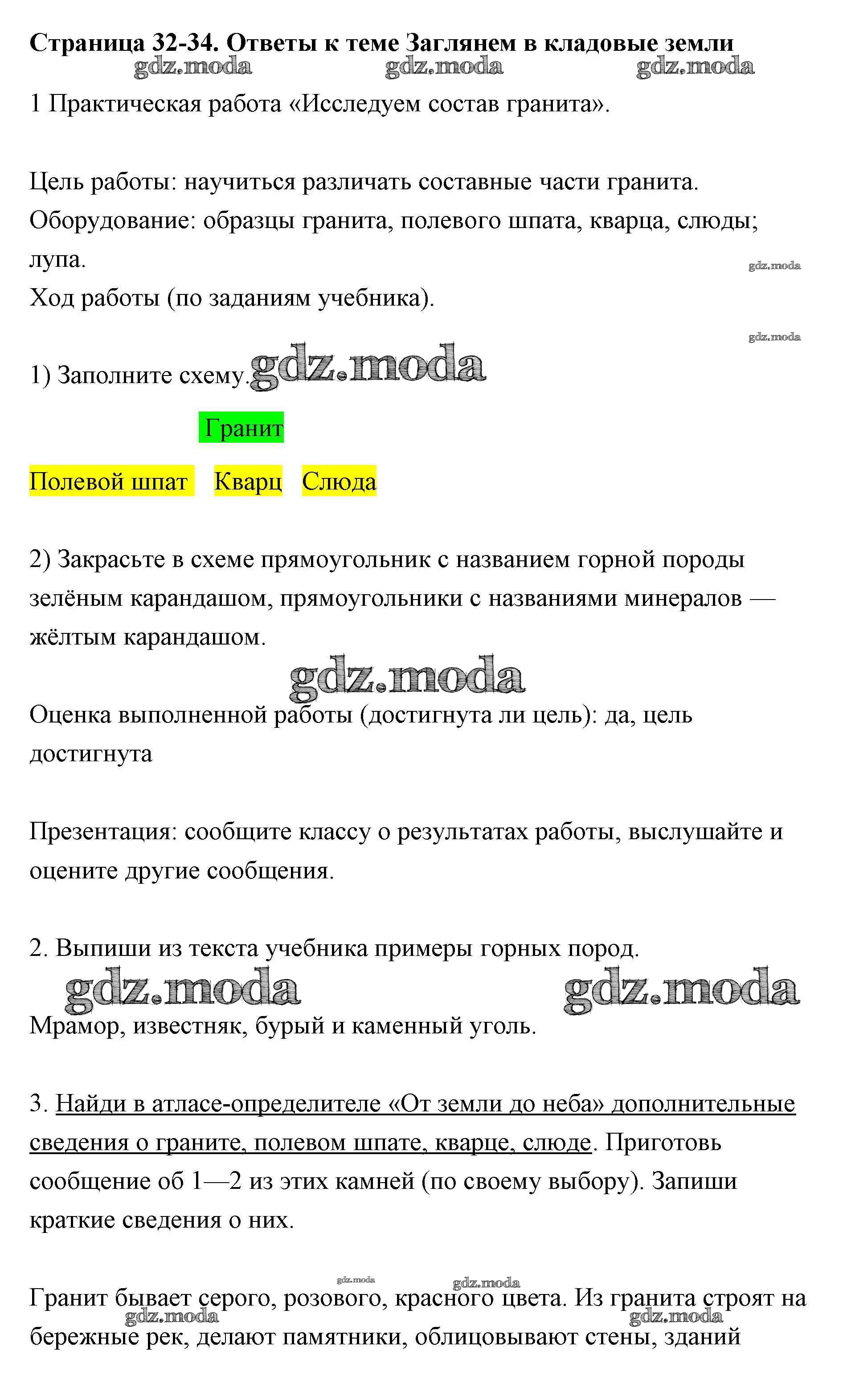 ОТВЕТ на задание № 32-34 Рабочая тетрадь по Окружающему миру 2 класс Плешаков Школа России