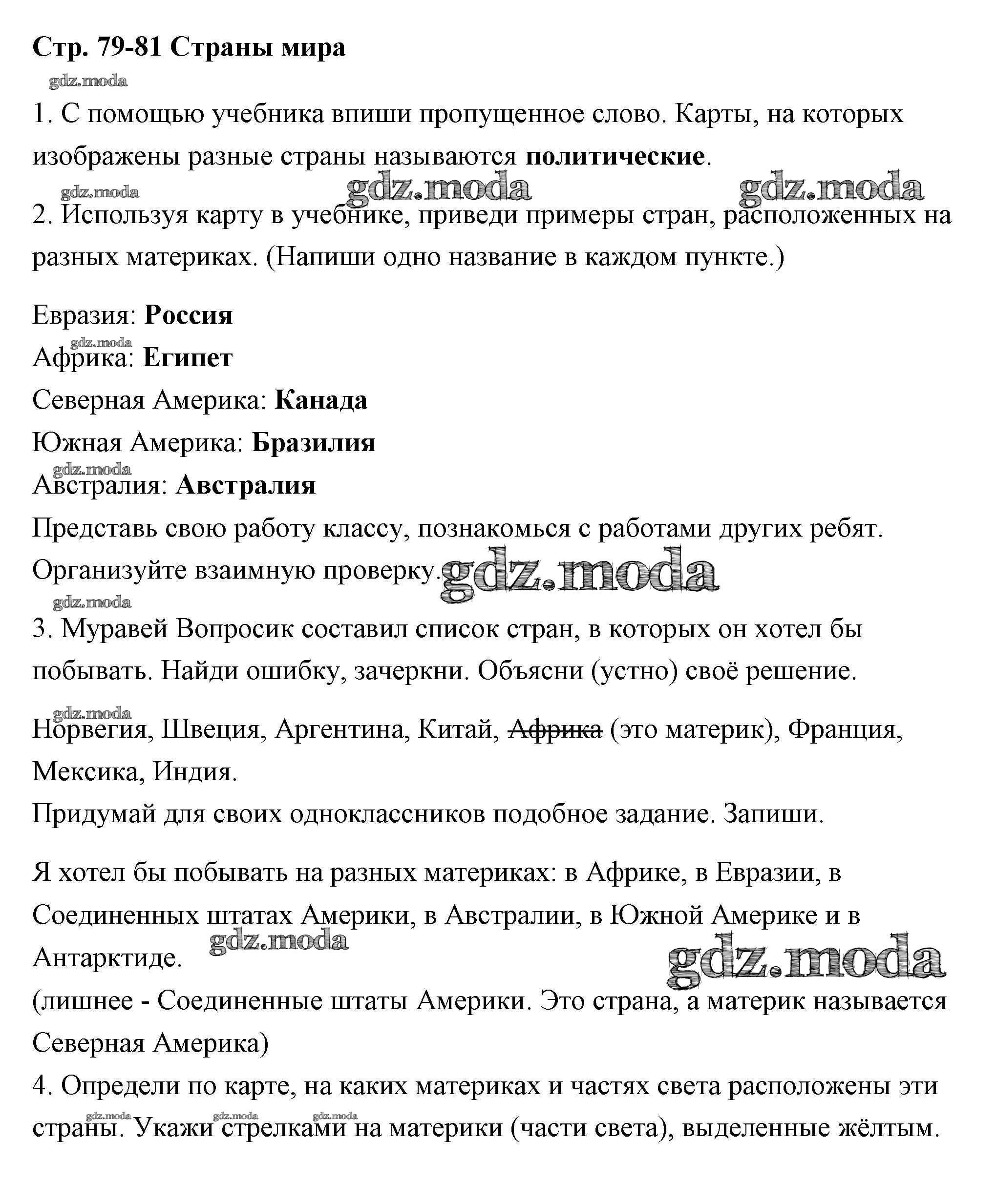 ОТВЕТ на задание № 79 Рабочая тетрадь по Окружающему миру 2 класс Плешаков Школа России