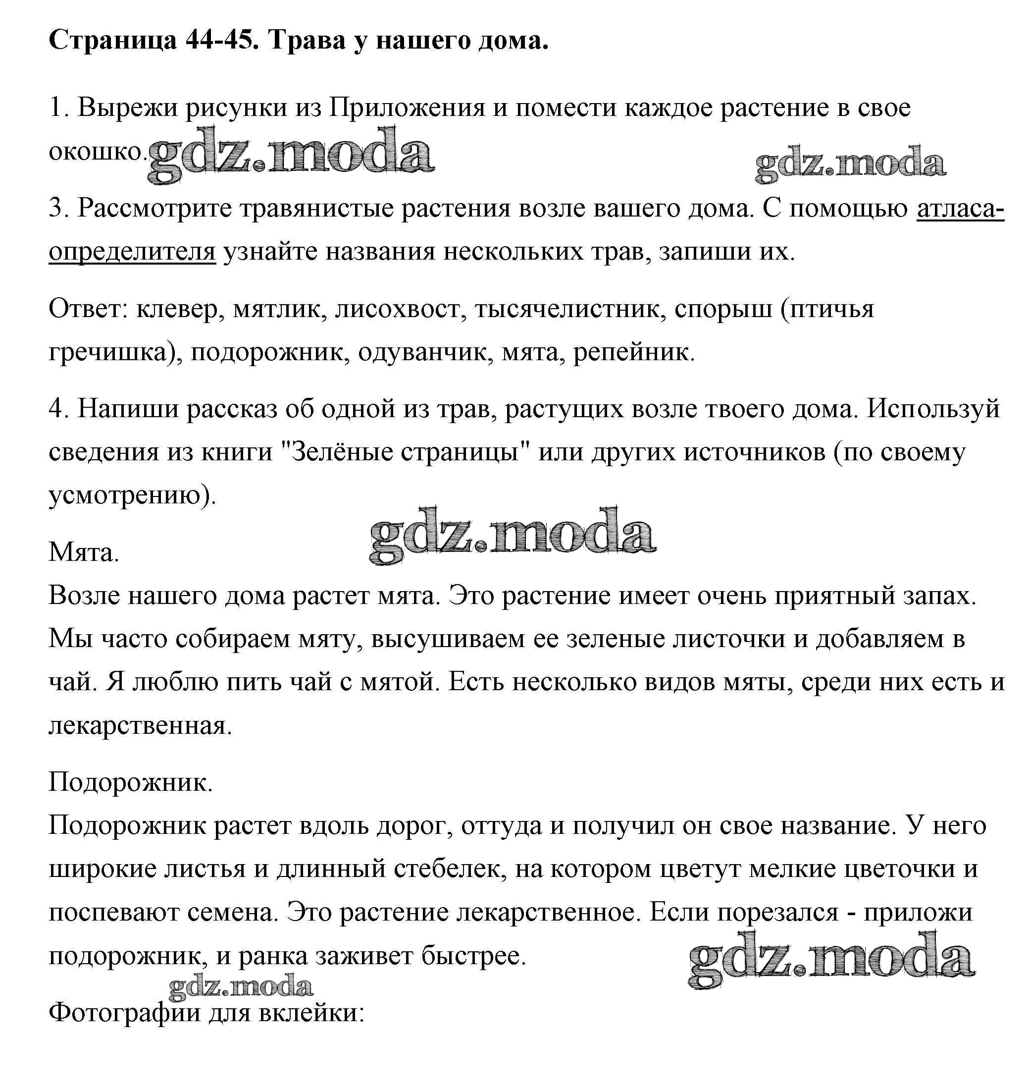 ОТВЕТ на задание № 44-45 Рабочая тетрадь по Окружающему миру 2 класс Плешаков Перспектива
