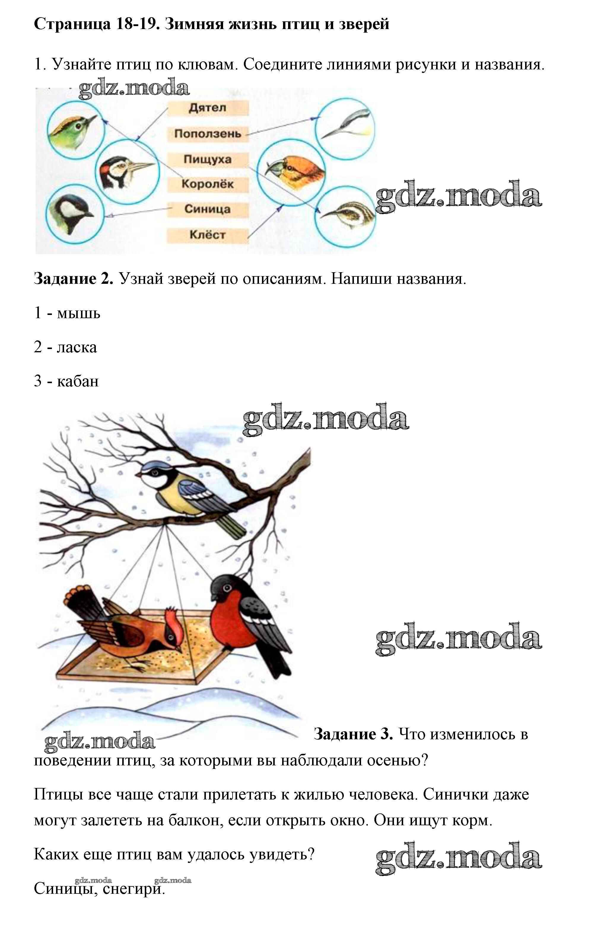 ГДЗ решение к заданию № 18-19 Окружающий мир 2 класс рабочая тетрадь Плешаков (Перспектива) Просвещение 2017 Часть 1, Часть 2 ФГОС бесплатно на гдз.мода!