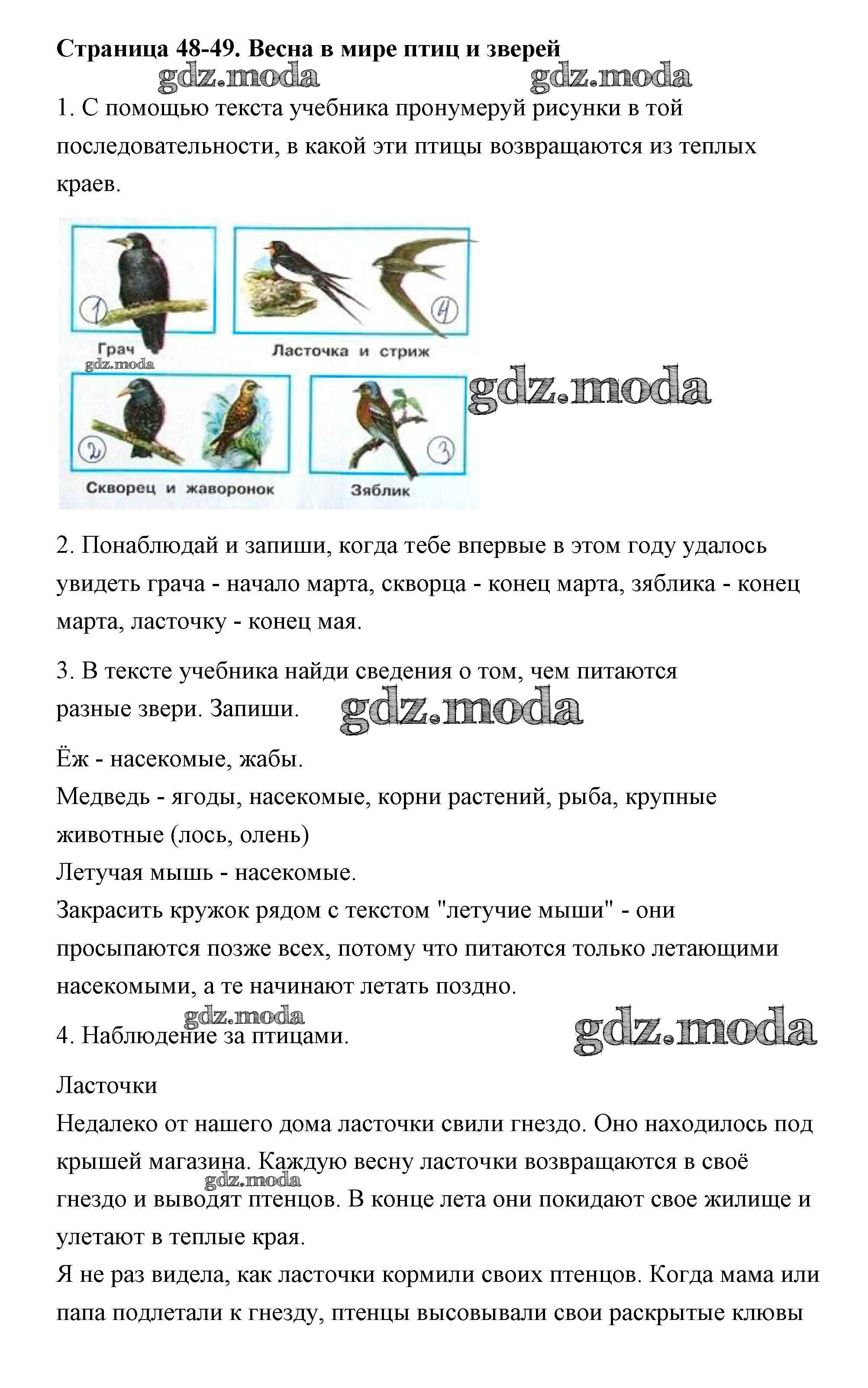 ГДЗ решение к заданию № 48-49 Окружающий мир 2 класс рабочая тетрадь Плешаков (Перспектива) Просвещение 2017 Часть 1, Часть 2 ФГОС бесплатно на гдз.мода!