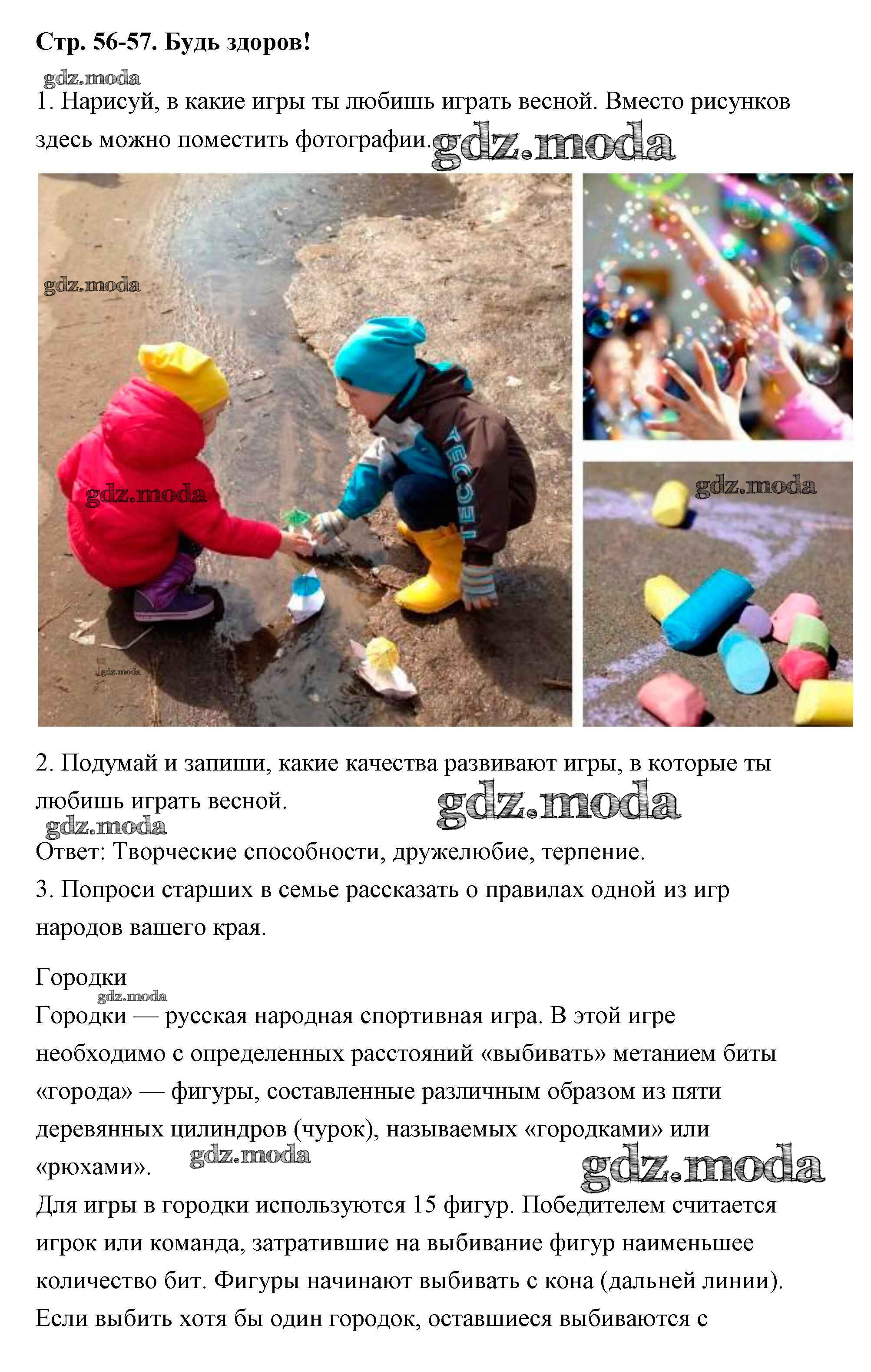 ГДЗ решение к заданию № 56-57 Окружающий мир 2 класс рабочая тетрадь Плешаков (Перспектива) Просвещение 2017 Часть 1, Часть 2 ФГОС бесплатно на гдз.мода!