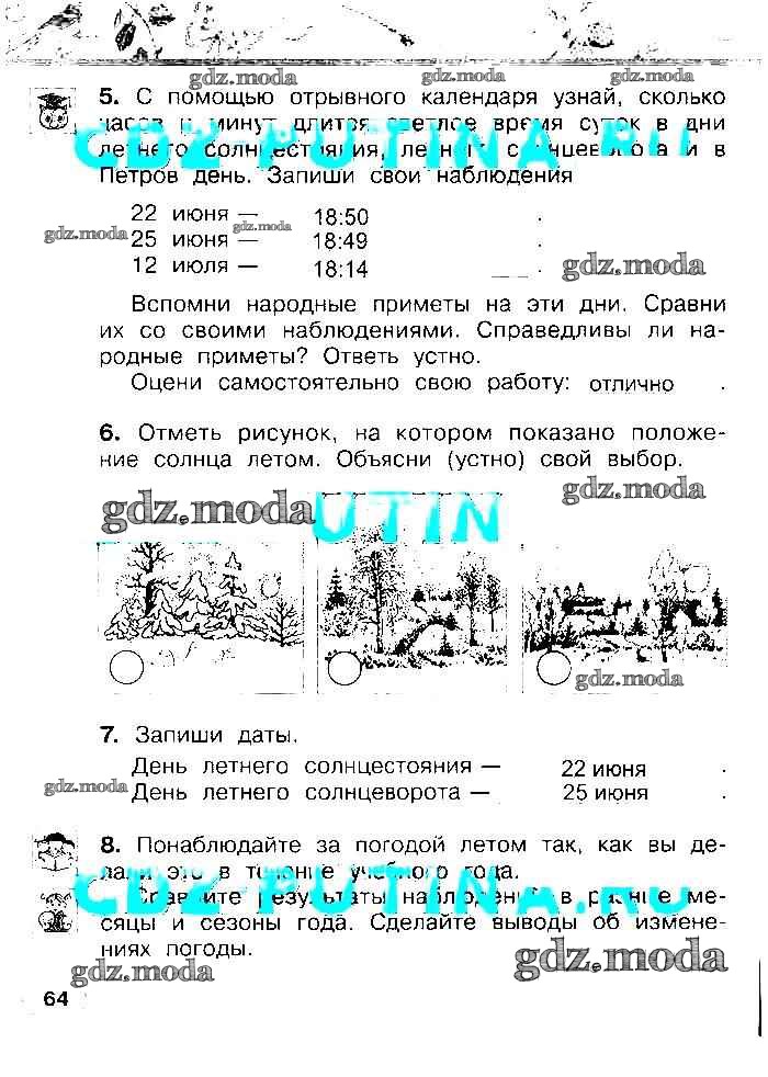 ОТВЕТ на задание № 62-65 Рабочая тетрадь по Окружающему миру 2 класс Плешаков Перспектива