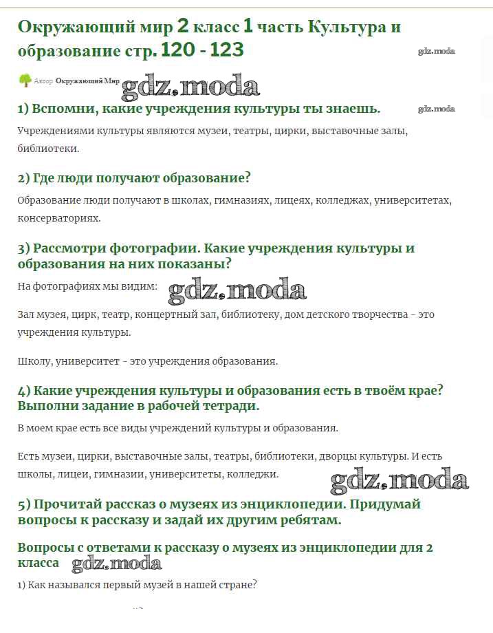 ОТВЕТ на задание № 120 Учебник по Окружающему миру 2 класс Плешаков