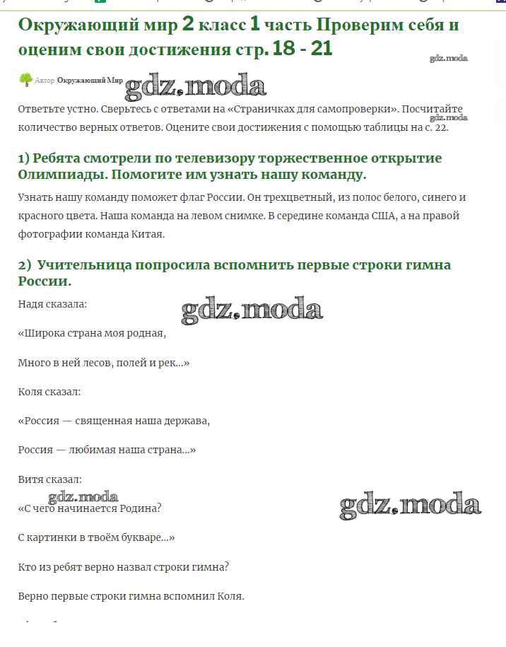 ОТВЕТ на задание № 18 Учебник по Окружающему миру 2 класс Плешаков