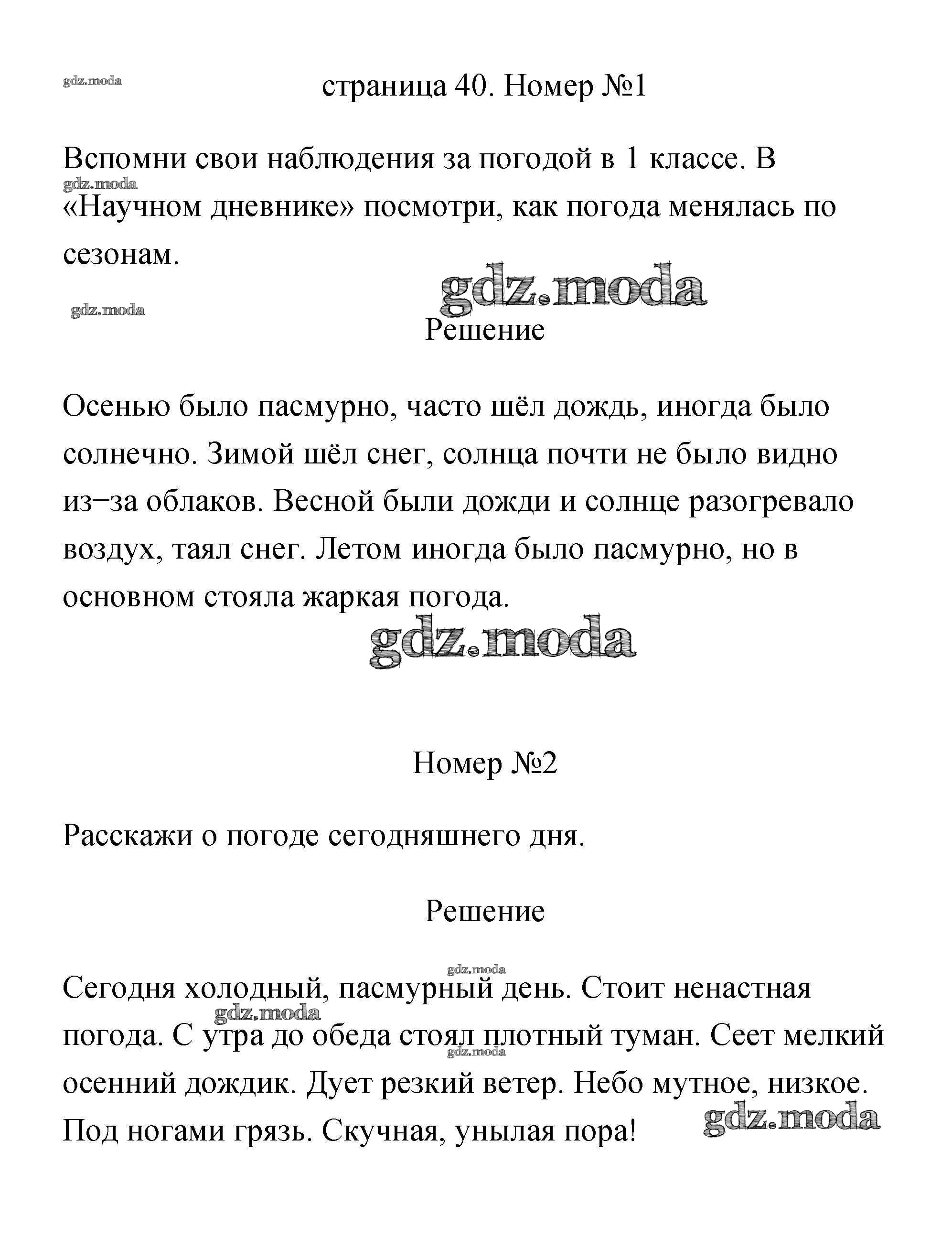 ГДЗ решение к заданию № 40 Окружающий мир 2 класс Плешаков (Школы России) Просвещение 2017 Часть 1, Часть 2 ФГОС бесплатно на гдз.мода!