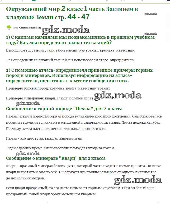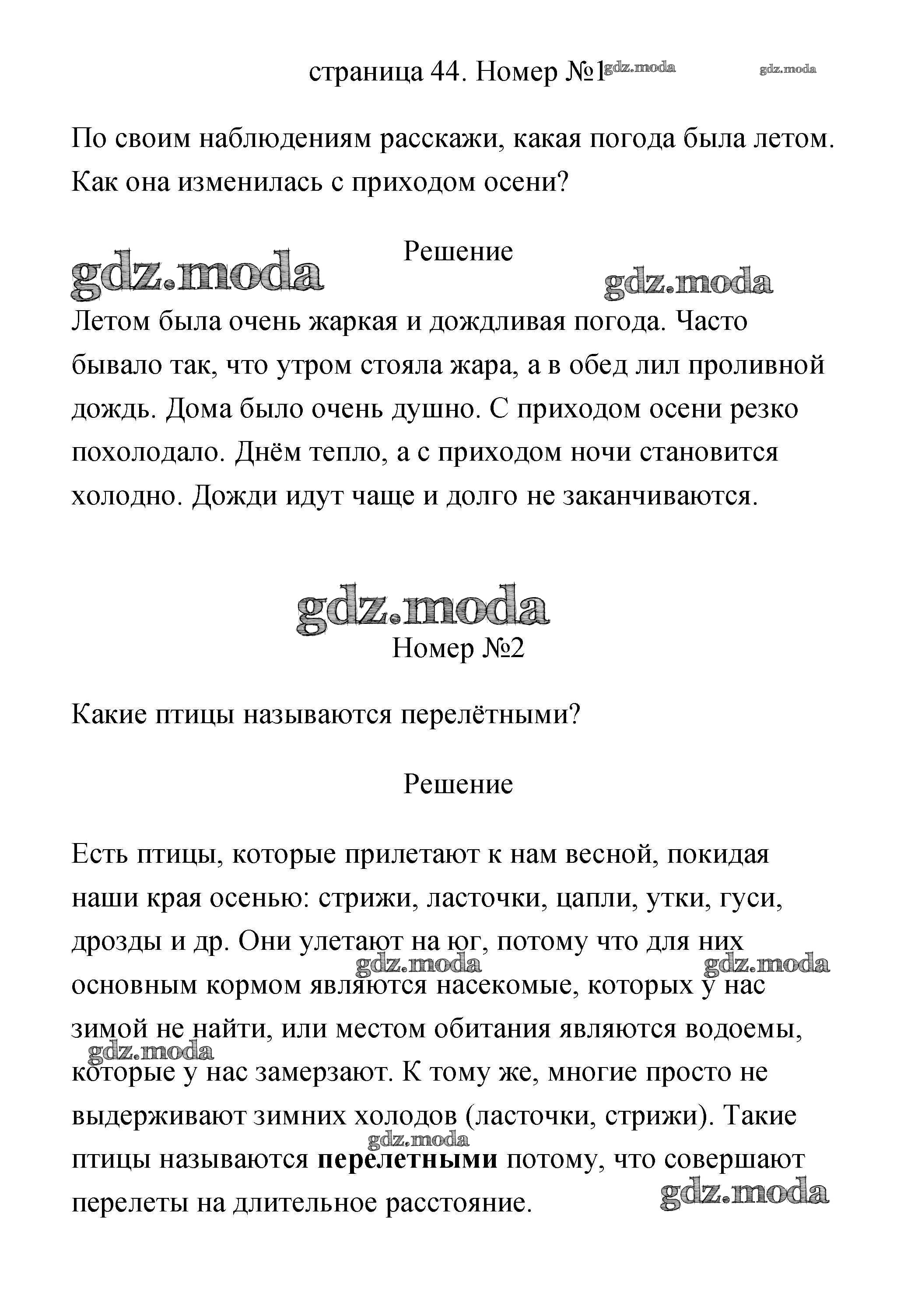 ГДЗ решение к заданию № 44 Окружающий мир 2 класс Плешаков (Школы России) Просвещение 2017 Часть 1, Часть 2 ФГОС бесплатно на гдз.мода!
