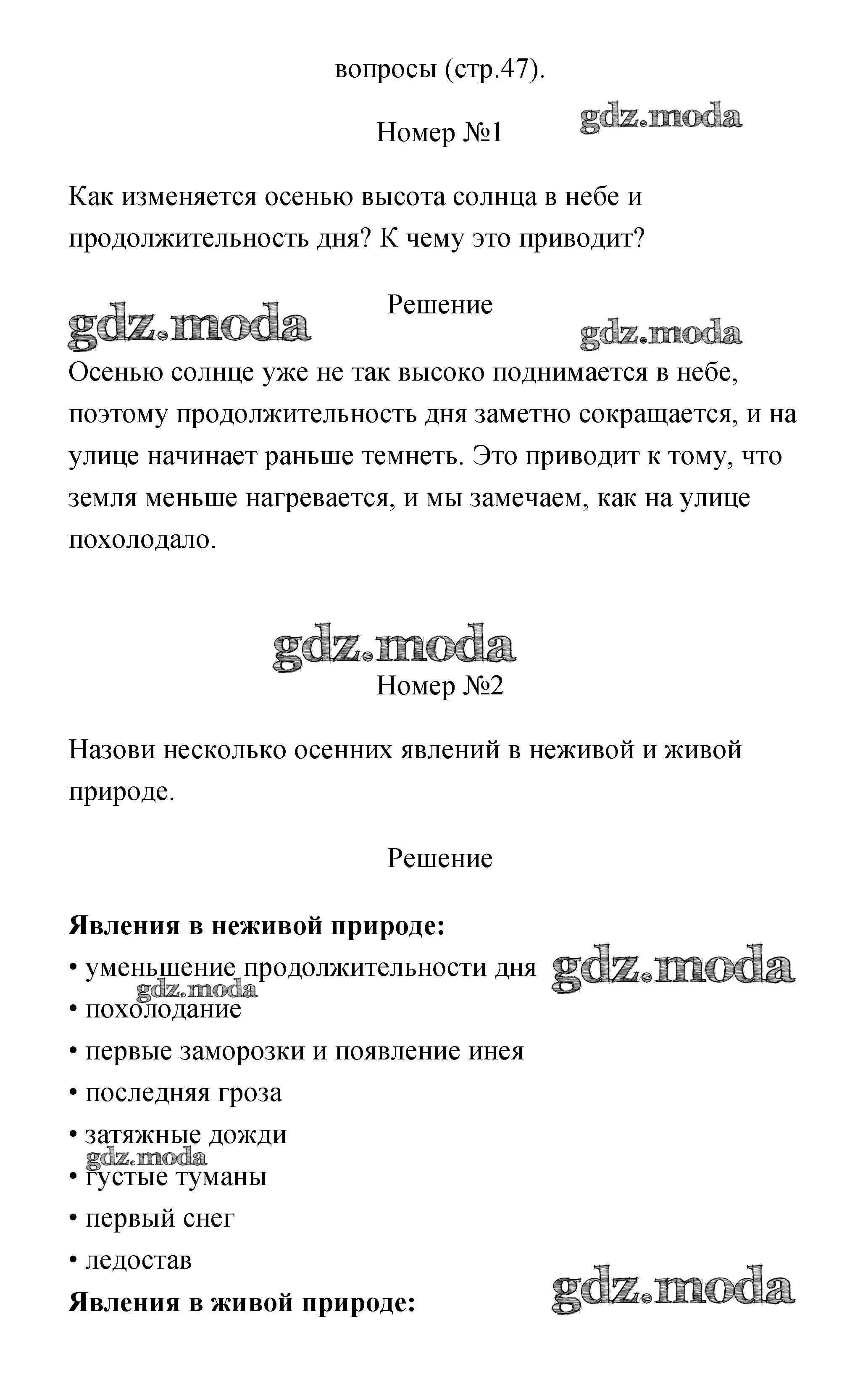 ГДЗ решение к заданию № 47 Окружающий мир 2 класс Плешаков (Школы России) Просвещение 2017 Часть 1, Часть 2 ФГОС бесплатно на гдз.мода!