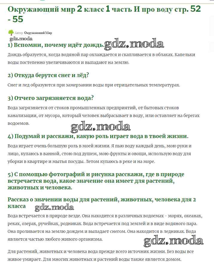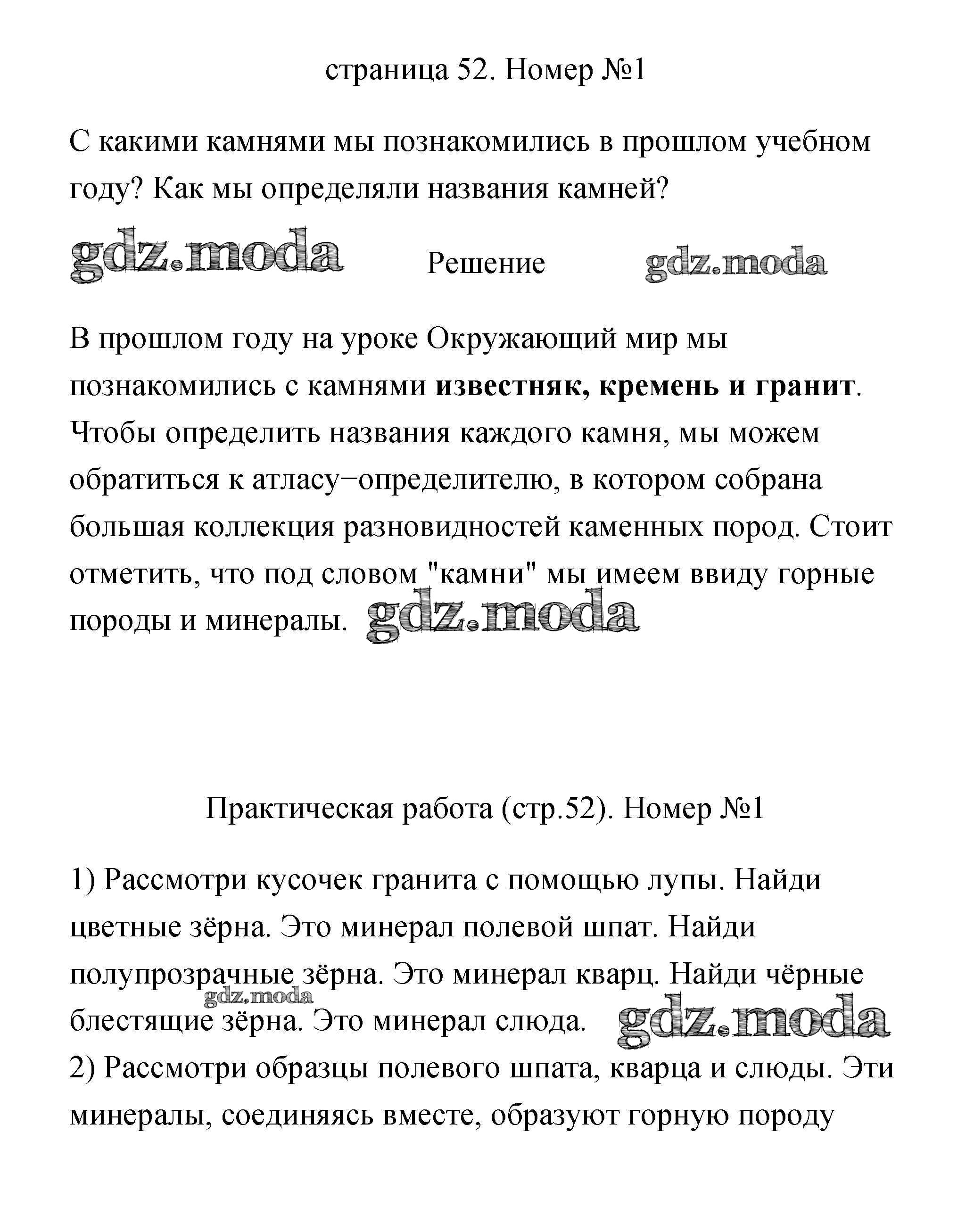 ОТВЕТ на задание № 52 Учебник по Окружающему миру 2 класс Плешаков