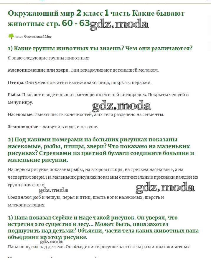 ОТВЕТ на задание № 60 Учебник по Окружающему миру 2 класс Плешаков