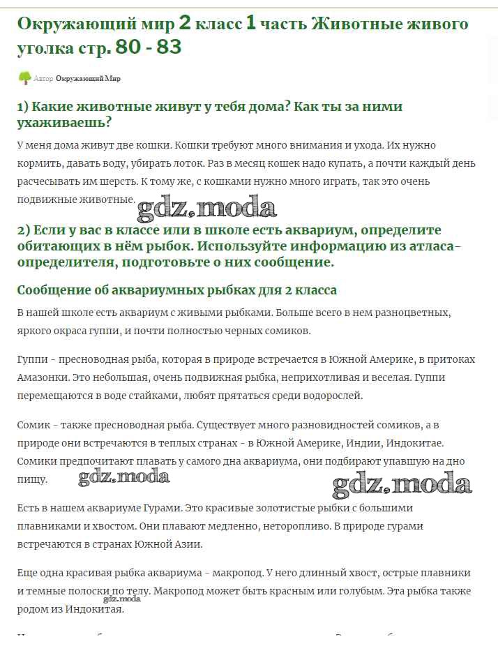 ОТВЕТ на задание № 80 Учебник по Окружающему миру 2 класс Плешаков