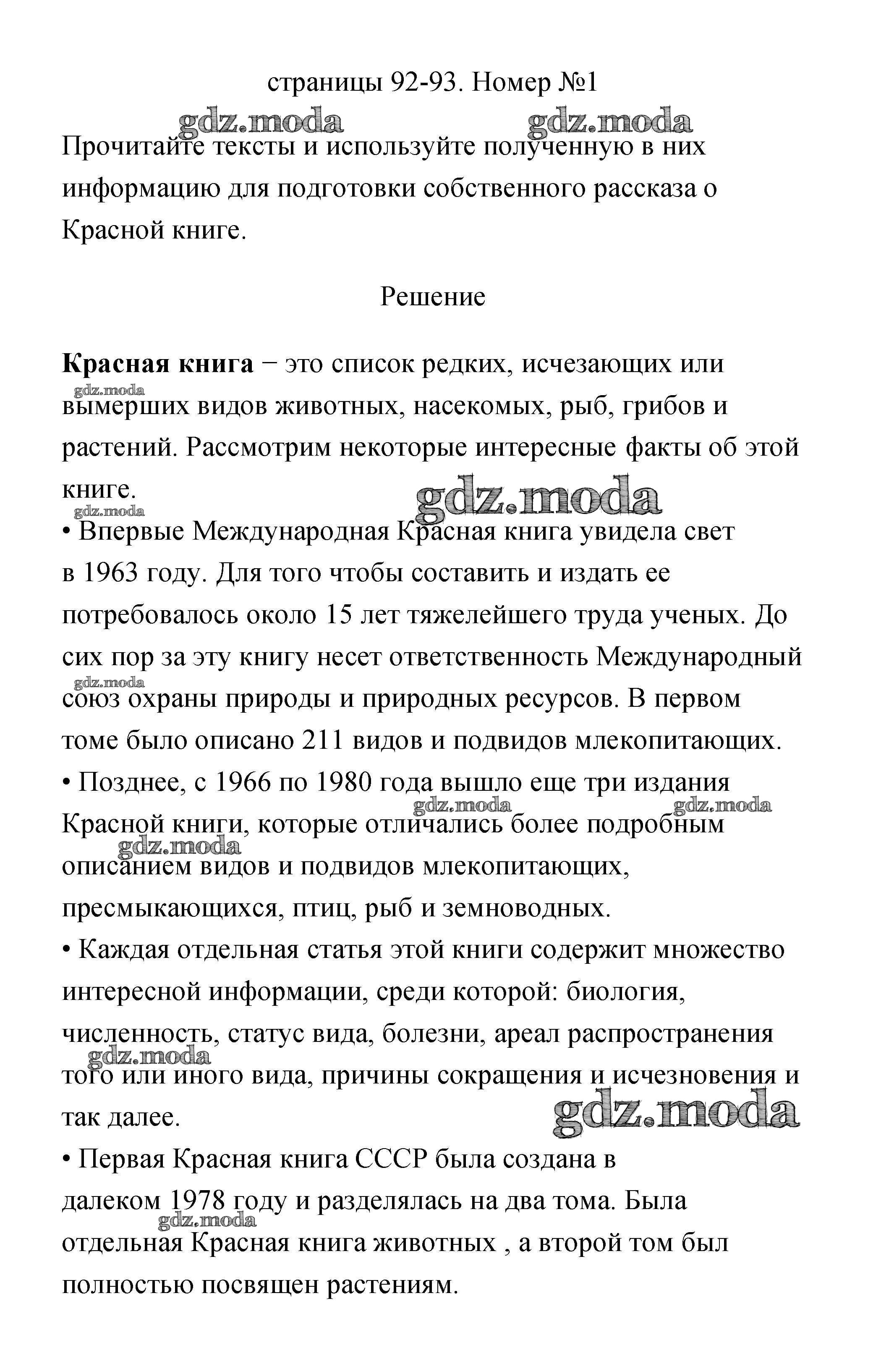 ОТВЕТ на задание № 92 Учебник по Окружающему миру 2 класс Плешаков