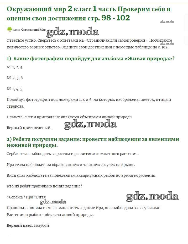 ОТВЕТ на задание № 98 Учебник по Окружающему миру 2 класс Плешаков