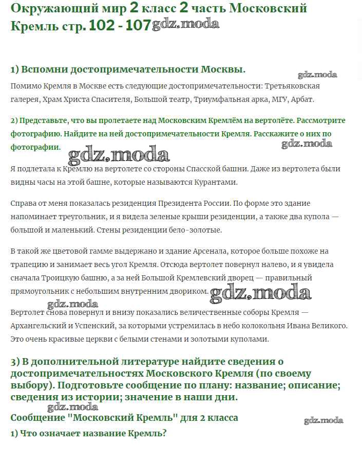 ОТВЕТ на задание № 102 Учебник по Окружающему миру 2 класс Плешаков