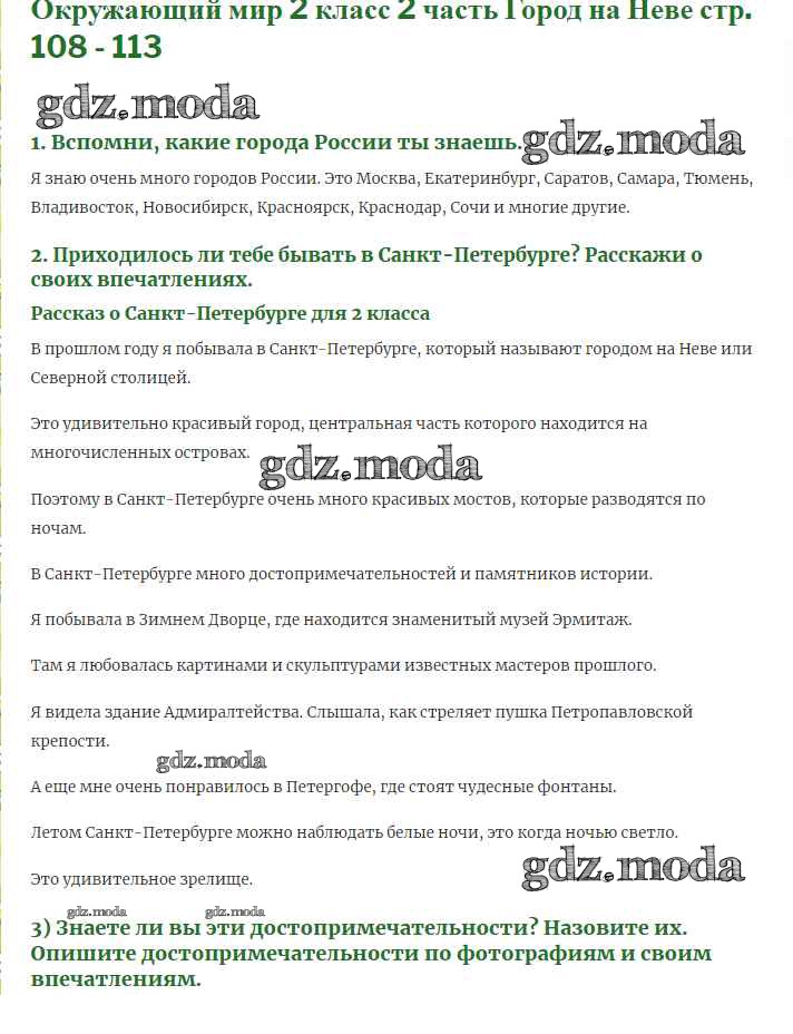 ОТВЕТ на задание № 108 Учебник по Окружающему миру 2 класс Плешаков