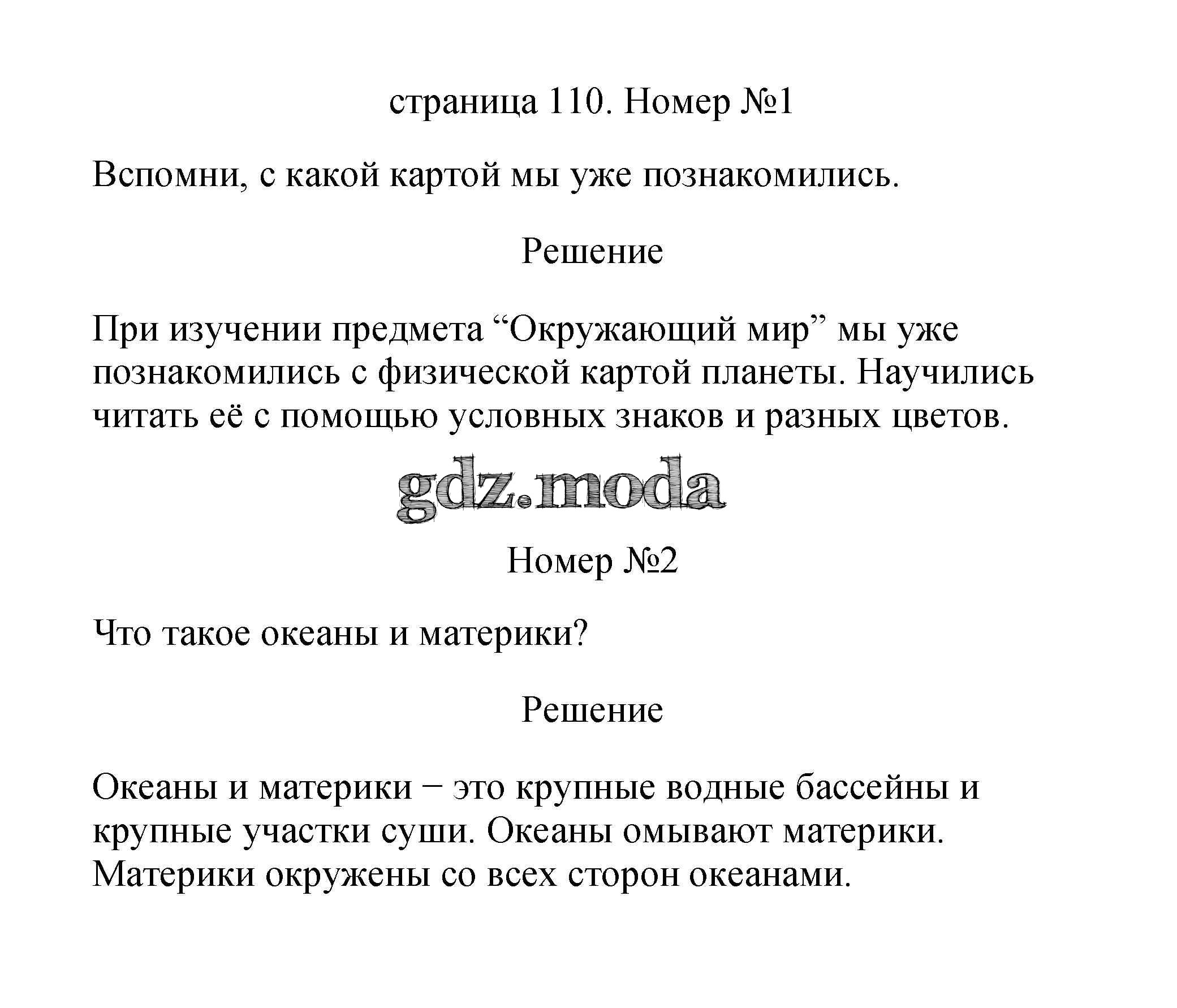 ГДЗ решение к заданию № 110 Окружающий мир 2 класс Плешаков (Школы России) Просвещение 2017 Часть 1, Часть 2 ФГОС бесплатно на гдз.мода!