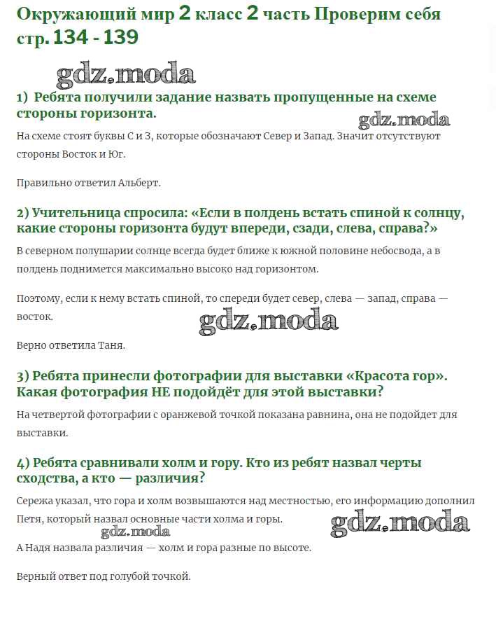 ГДЗ решение к заданию № 134 Окружающий мир 2 класс Плешаков (Школы России) Просвещение 2017 Часть 1, Часть 2 ФГОС бесплатно на гдз.мода!