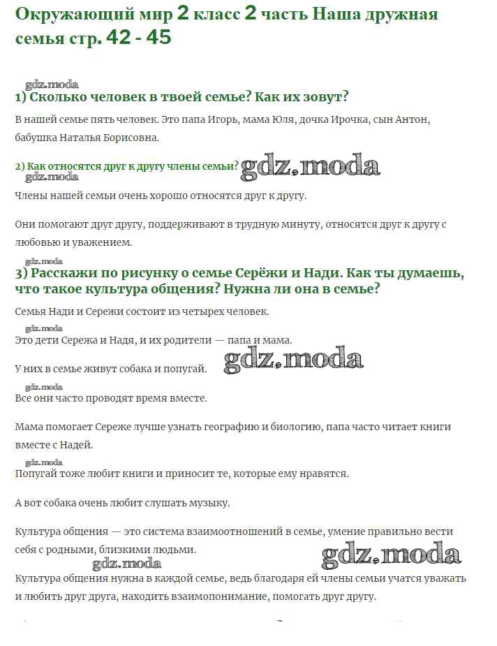 ОТВЕТ на задание № 42 Учебник по Окружающему миру 2 класс Плешаков