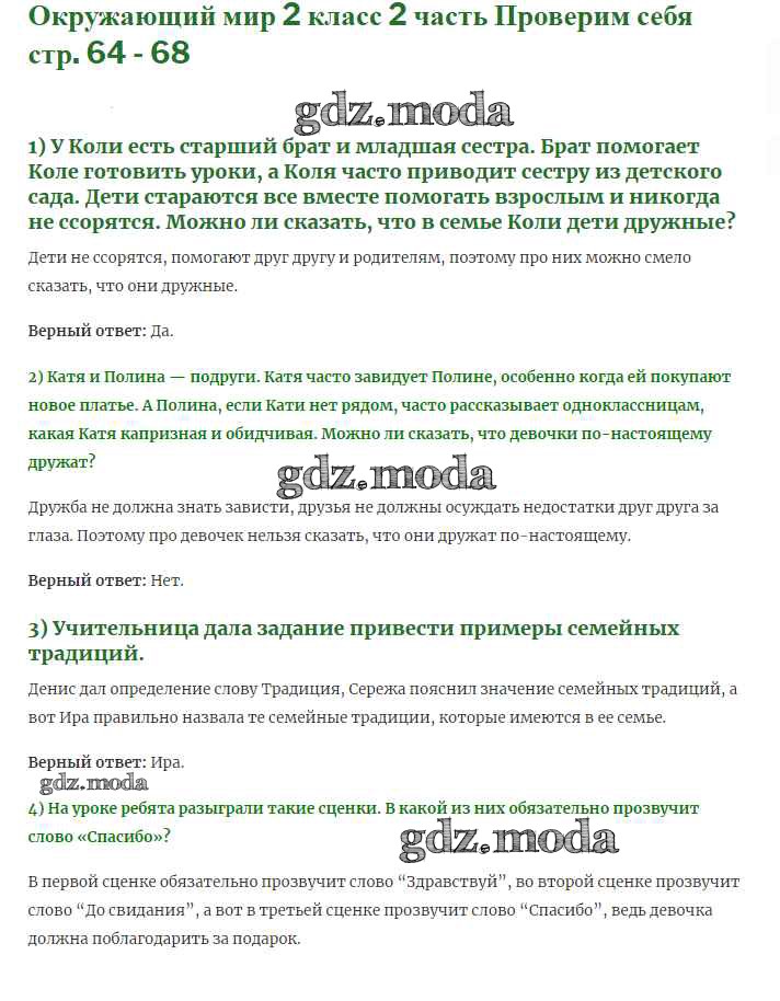 ОТВЕТ на задание № 64 Учебник по Окружающему миру 2 класс Плешаков