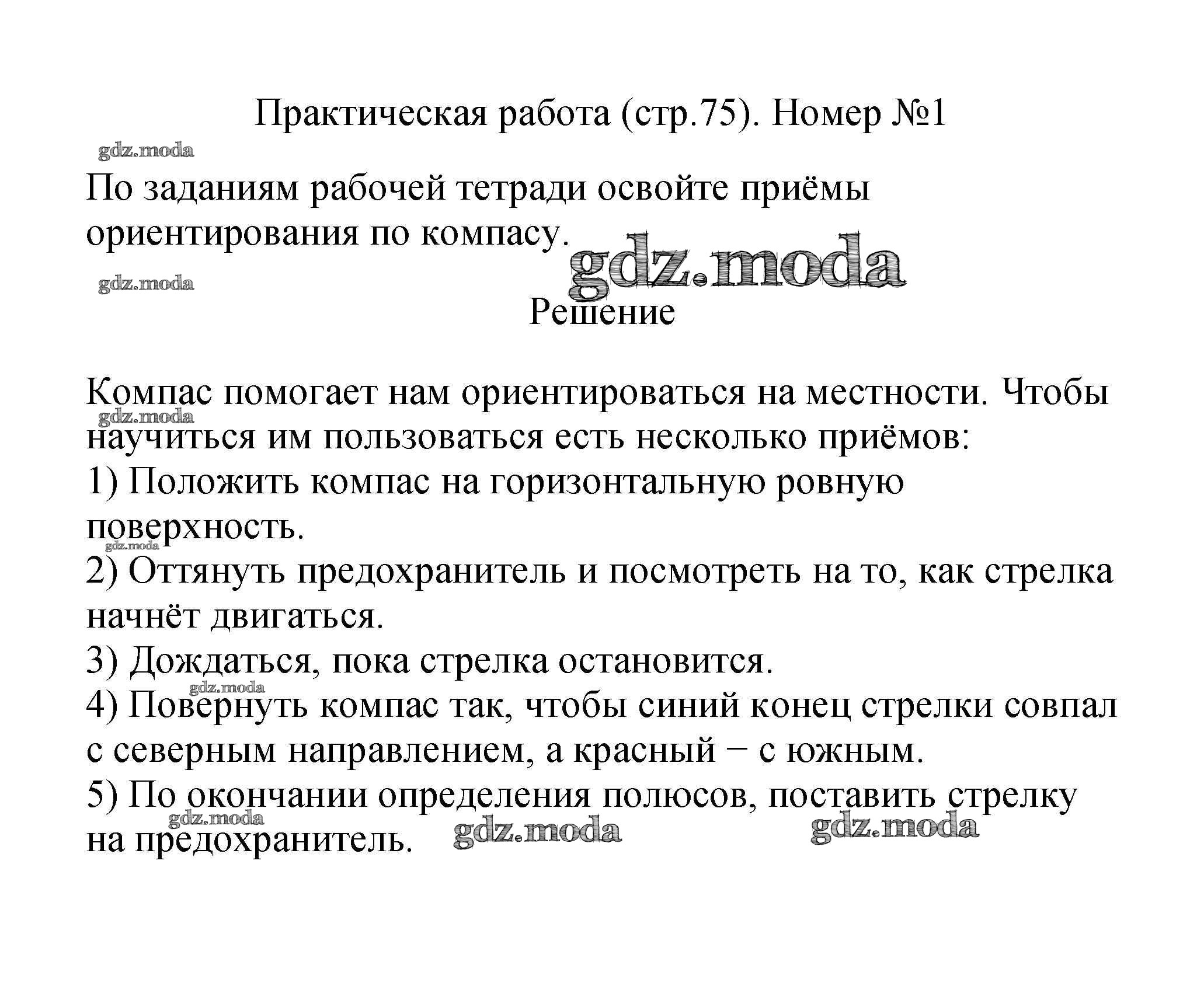 ГДЗ решение к заданию № 75 Окружающий мир 2 класс Плешаков (Школы России) Просвещение 2017 Часть 1, Часть 2 ФГОС бесплатно на гдз.мода!