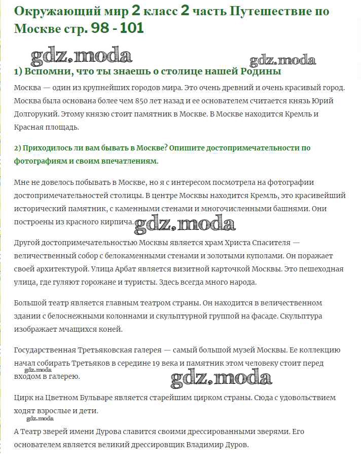 ОТВЕТ на задание № 98 Учебник по Окружающему миру 2 класс Плешаков