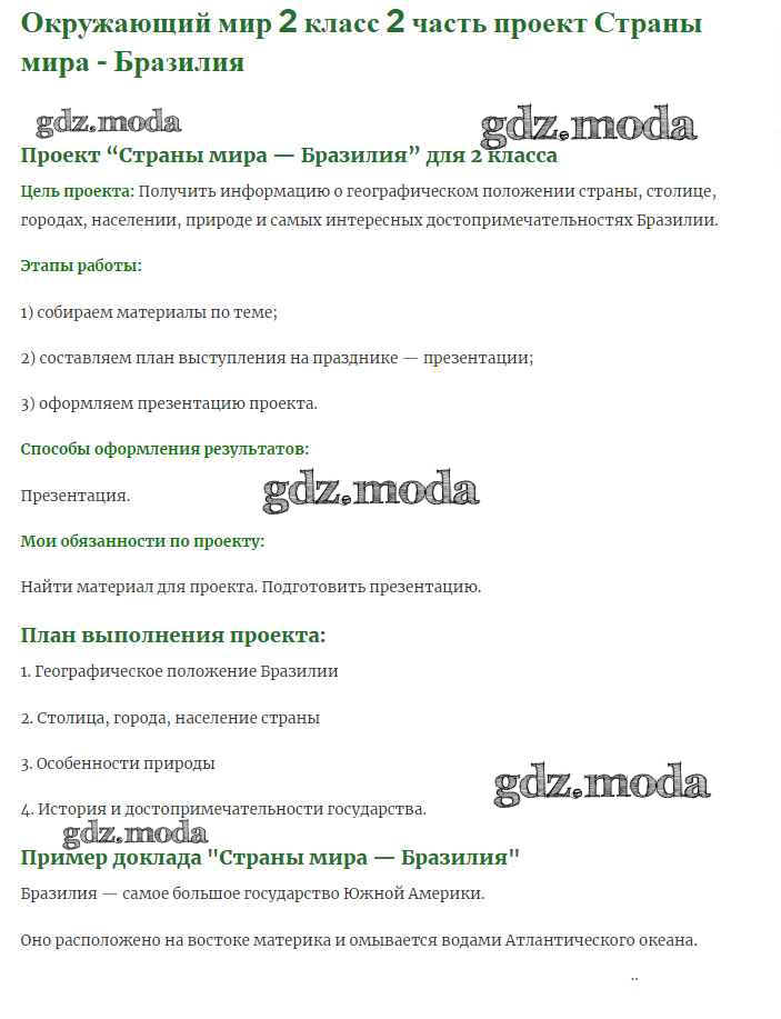ОТВЕТ на задание № 1 Учебник по Окружающему миру 2 класс Плешаков