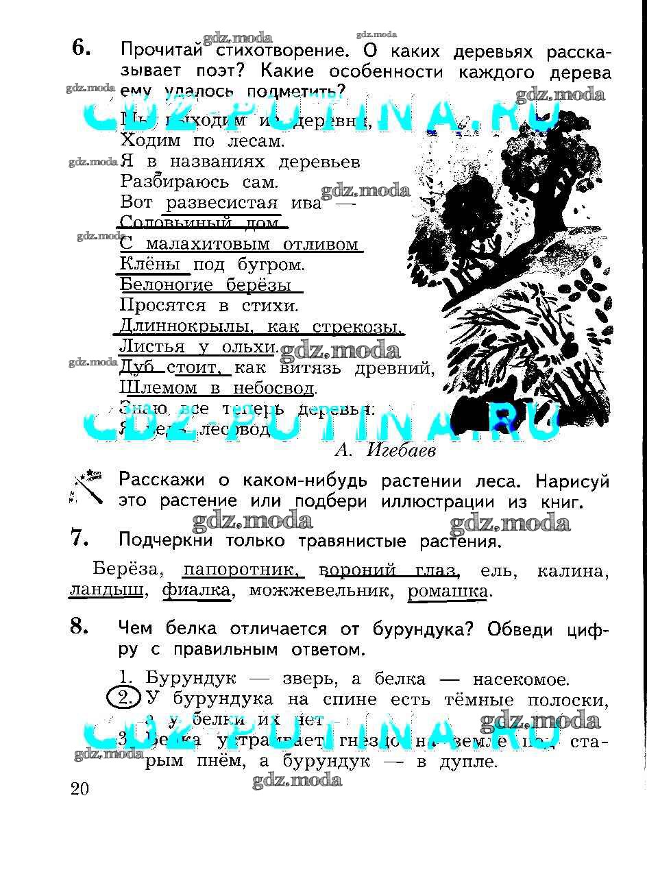 ГДЗ решение к заданию № 20 Окружающий мир 2 класс рабочая тетрадь Виноградова Н.Ф. Вентана-граф 2017 Часть 1, Часть 2 бесплатно на гдз.мода!