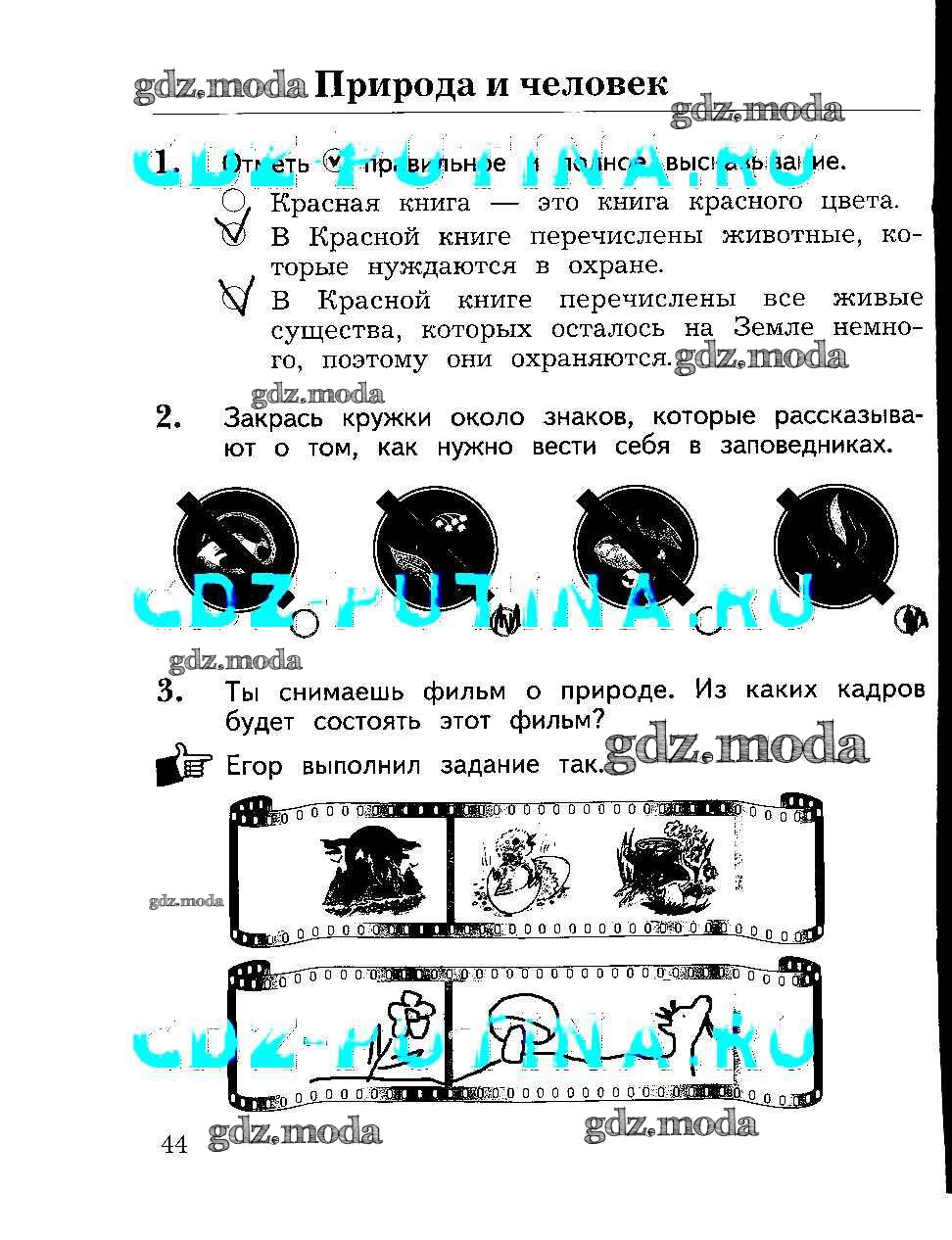 ГДЗ решение к заданию № 44 Окружающий мир 2 класс рабочая тетрадь Виноградова Н.Ф. Вентана-граф 2017 Часть 1, Часть 2 бесплатно на гдз.мода!