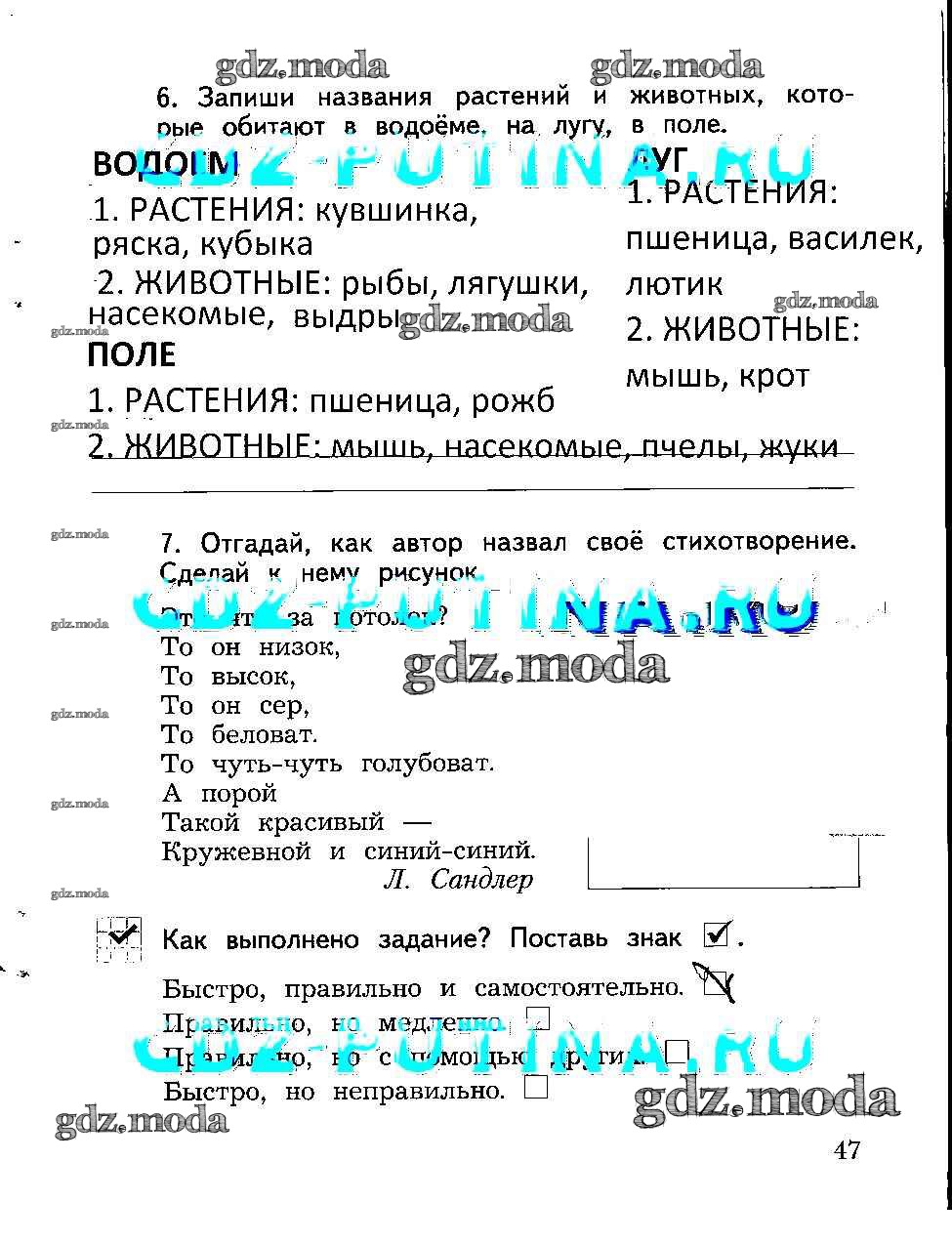 ГДЗ решение к заданию № 47 Окружающий мир 2 класс рабочая тетрадь Виноградова Н.Ф. Вентана-граф 2017 Часть 1, Часть 2 бесплатно на гдз.мода!