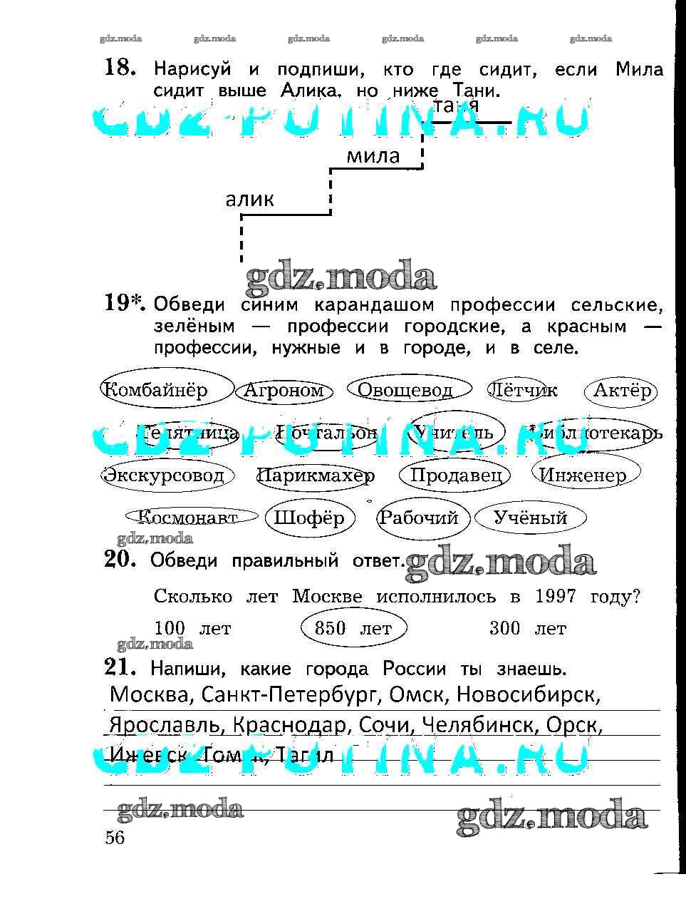 ГДЗ решение к заданию № 56 Окружающий мир 2 класс рабочая тетрадь Виноградова Н.Ф. Вентана-граф 2017 Часть 1, Часть 2 бесплатно на гдз.мода!