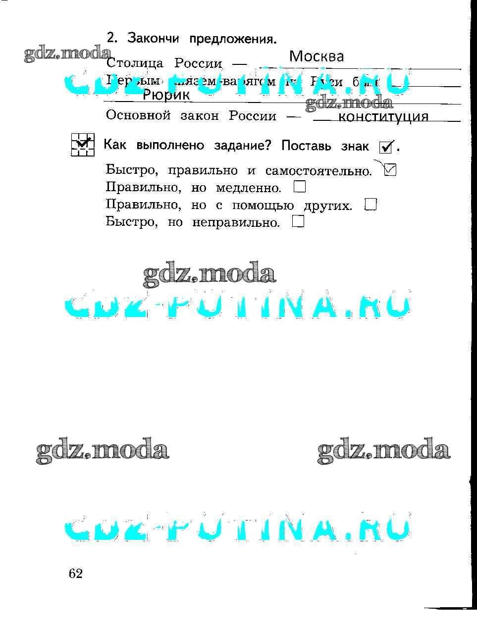 ГДЗ решение к заданию № 62 Окружающий мир 2 класс рабочая тетрадь Виноградова Н.Ф. Вентана-граф 2017 Часть 1, Часть 2 бесплатно на гдз.мода!