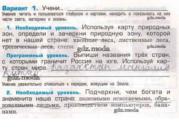 ГДЗ решение к заданию № Вариант 1 Окружающий мир 2 класс Проверочные и контрольные работы Вахрушев А.А. Баласс 2014 ФГОС бесплатно на гдз.мода!