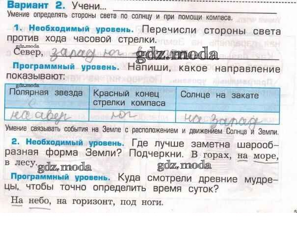 ГДЗ решение к заданию № Вариант 2 Окружающий мир 2 класс Проверочные и контрольные работы Вахрушев А.А. Баласс 2014 ФГОС бесплатно на гдз.мода!