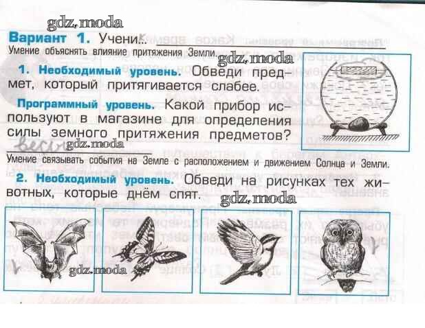 ГДЗ решение к заданию № Вариант 1 Окружающий мир 2 класс Проверочные и контрольные работы Вахрушев А.А. Баласс 2014 ФГОС бесплатно на гдз.мода!