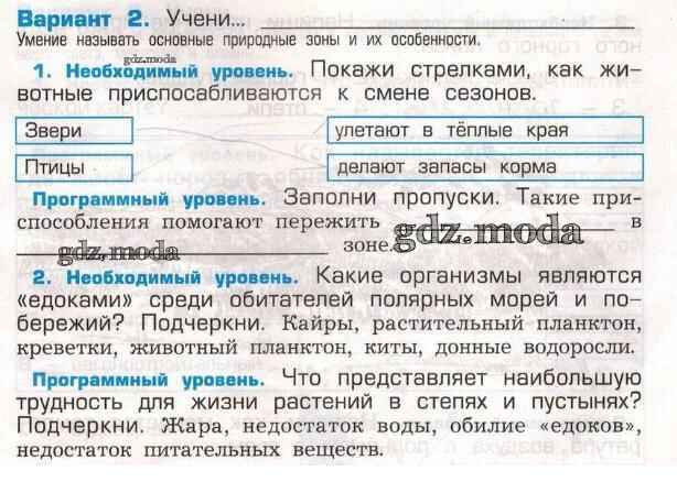 ГДЗ решение к заданию № Вариант 2 Окружающий мир 2 класс Проверочные и контрольные работы Вахрушев А.А. Баласс 2014 ФГОС бесплатно на гдз.мода!