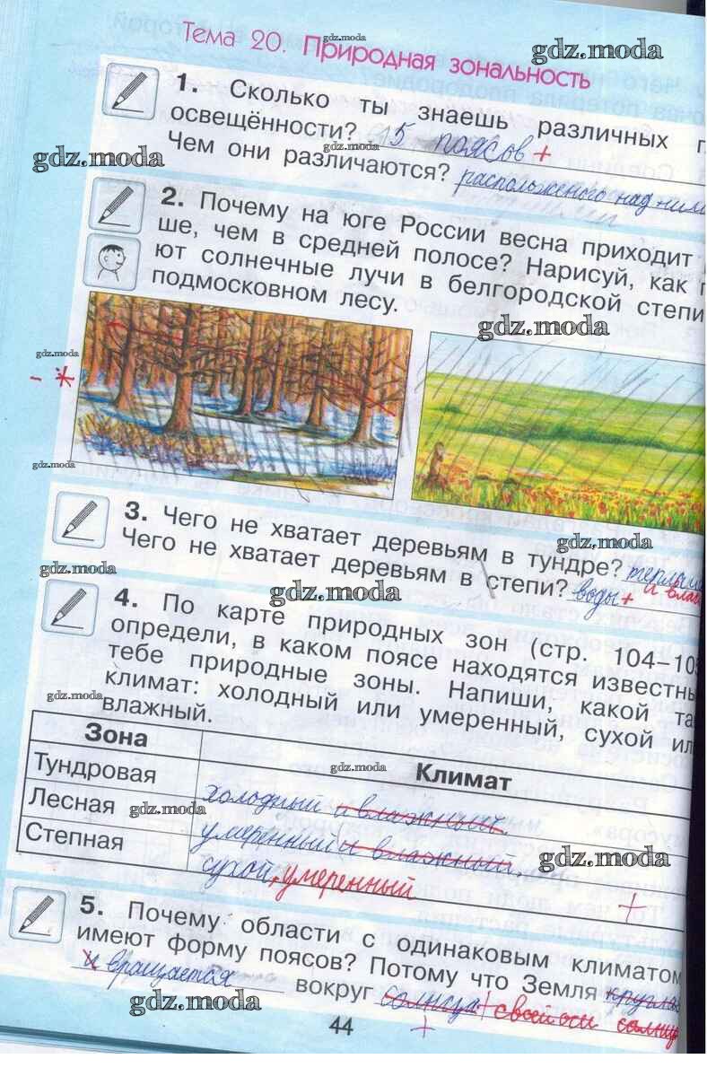 ОТВЕТ на задание № стр. 44 Рабочая тетрадь по Окружающему миру 2 класс Вахрушев Школа 2100