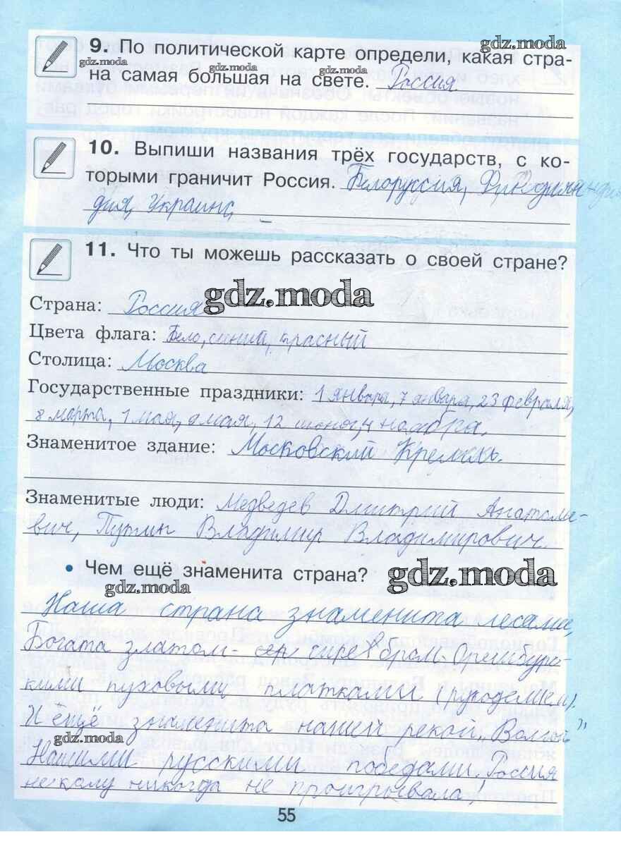 ГДЗ решение к заданию № стр. 55 Окружающий мир 2 класс рабочая тетрадь Вахрушев А.А. Баласс 2016 ФГОС бесплатно на гдз.мода!