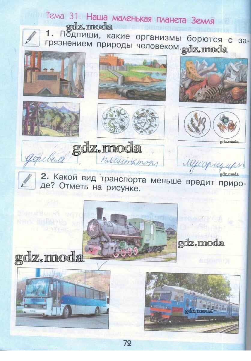 ГДЗ решение к заданию № стр. 72 Окружающий мир 2 класс рабочая тетрадь Вахрушев А.А. Баласс 2016 ФГОС бесплатно на гдз.мода!