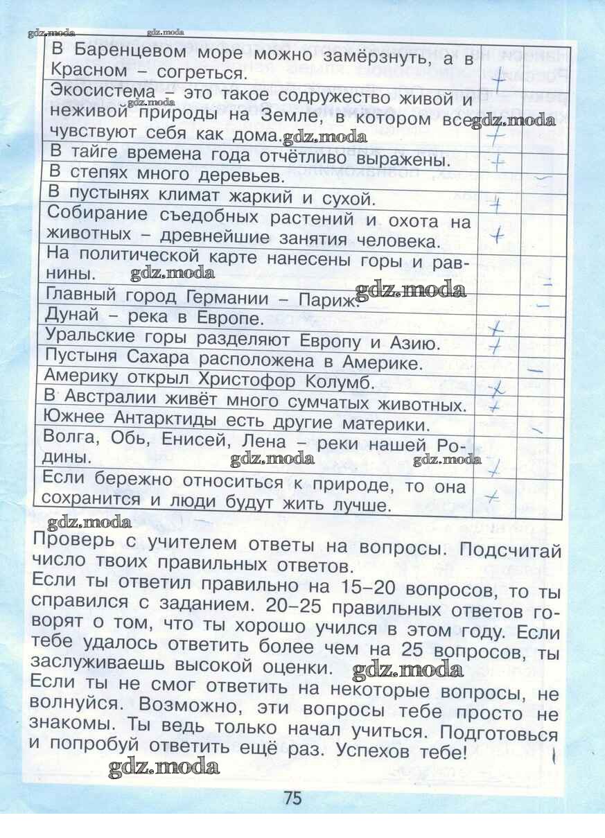 ГДЗ решение к заданию № стр. 75 Окружающий мир 2 класс рабочая тетрадь Вахрушев А.А. Баласс 2016 ФГОС бесплатно на гдз.мода!