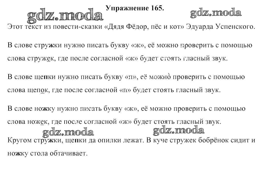 ГДЗ решение к заданию № 165 Русский язык 2 класс Антипова М. Б. Аверсэв 2019 Часть 1, Часть 2 ФГОС бесплатно на гдз.мода!