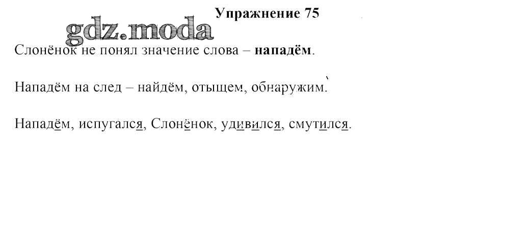 ГДЗ решение к заданию № 75 Русский язык 2 класс Антипова М. Б. Аверсэв 2019 Часть 1, Часть 2 ФГОС бесплатно на гдз.мода!