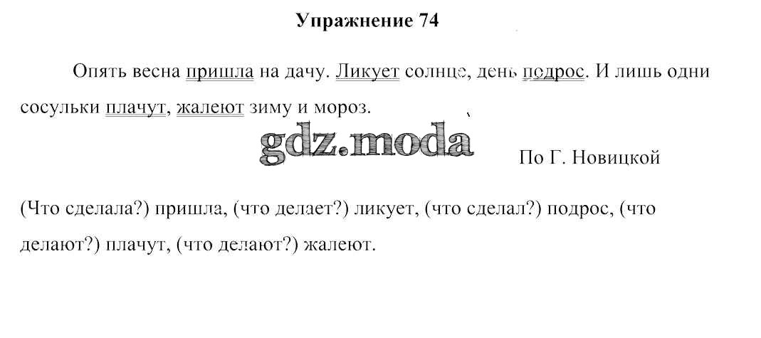 ГДЗ решение к заданию № 74 Русский язык 2 класс Антипова М. Б. Аверсэв 2019 Часть 1, Часть 2 ФГОС бесплатно на гдз.мода!