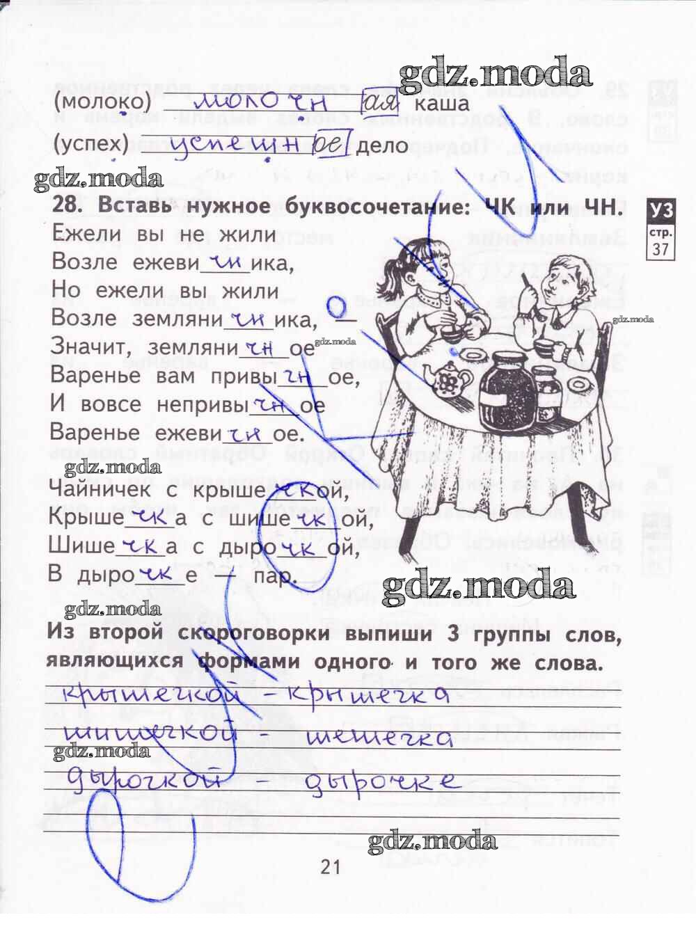 ГДЗ решение к заданию № 21 Русский язык 2 класс Тетрадь для самостоятельной работы Байкова Т.А. Академкнига 2017 Часть 1, Часть 2 ФГОС бесплатно на гдз.мода!