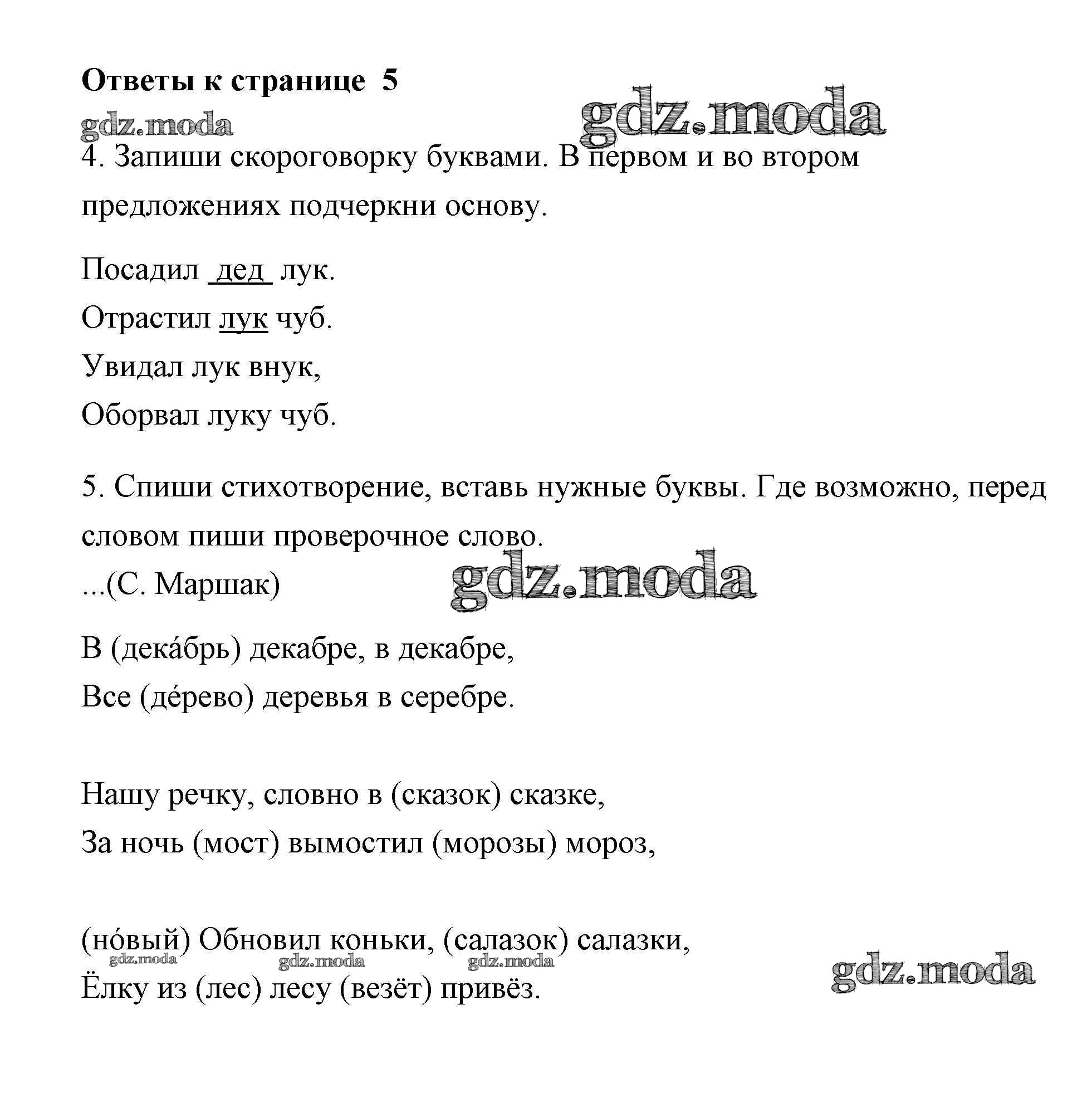 ОТВЕТ на задание № 5 Тетрадь для самостоятельной работы по Русскому языку 2 класс Байкова