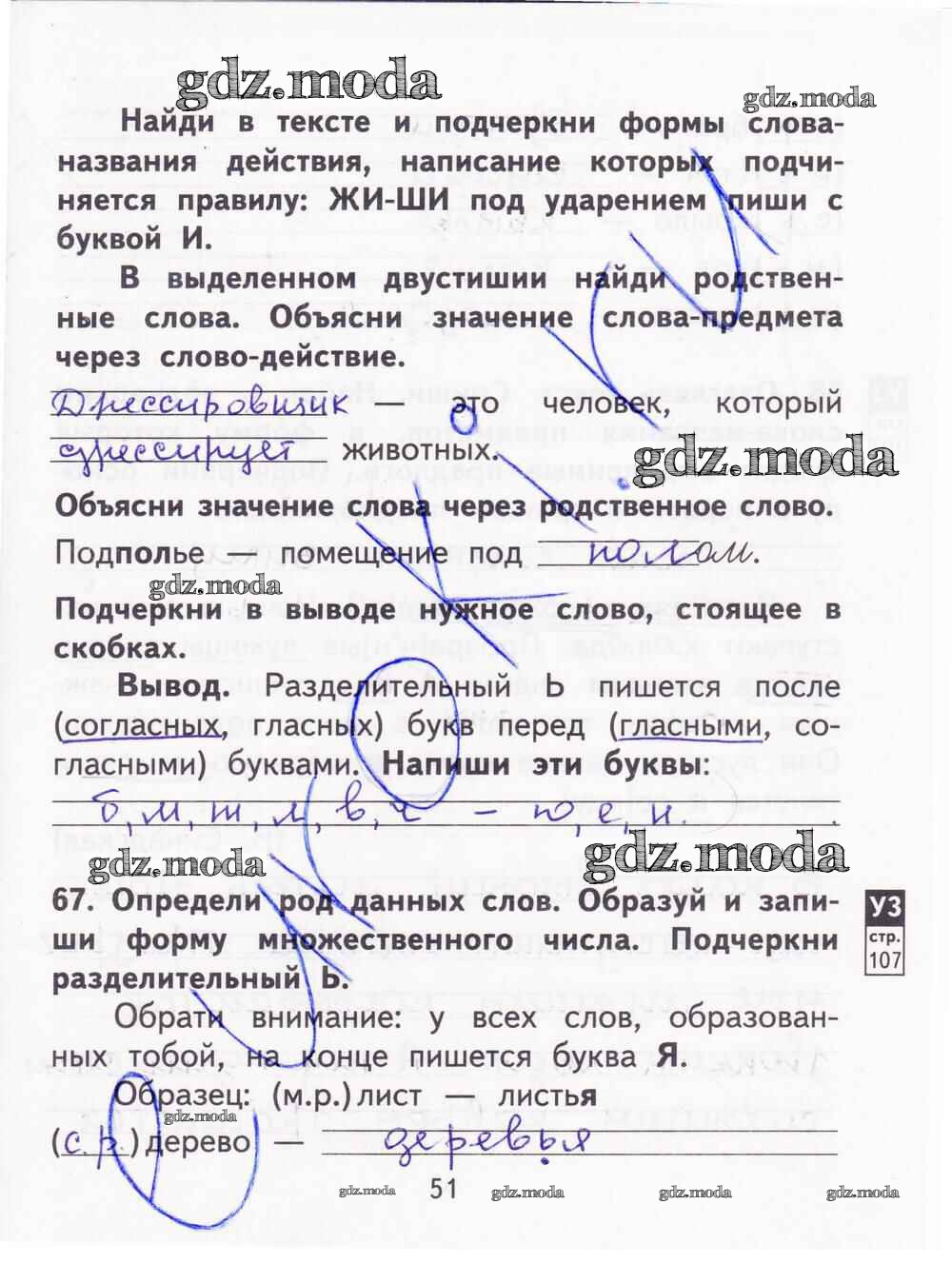 ОТВЕТ на задание № 51 Тетрадь для самостоятельной работы по Русскому языку 2 класс Байкова