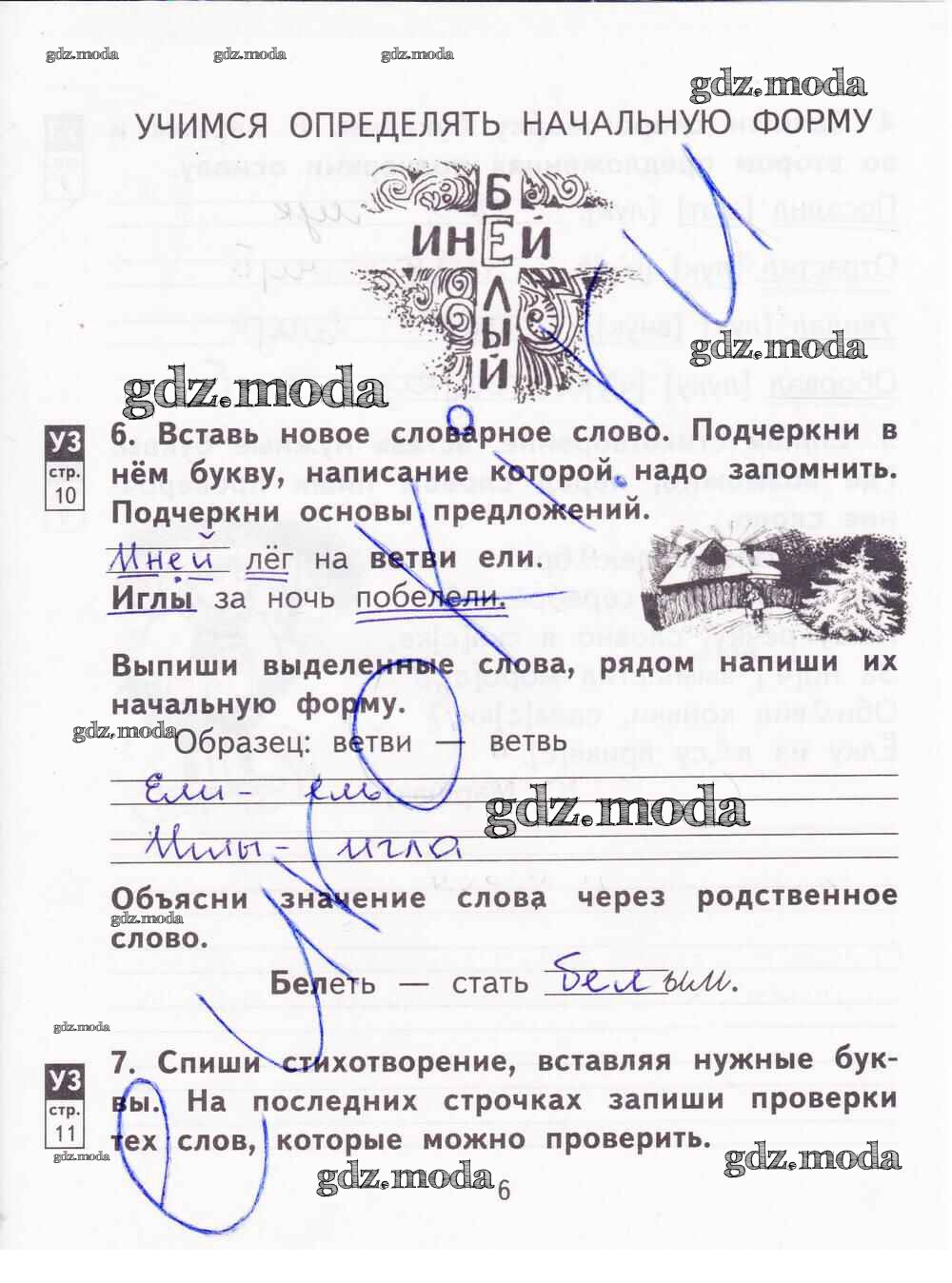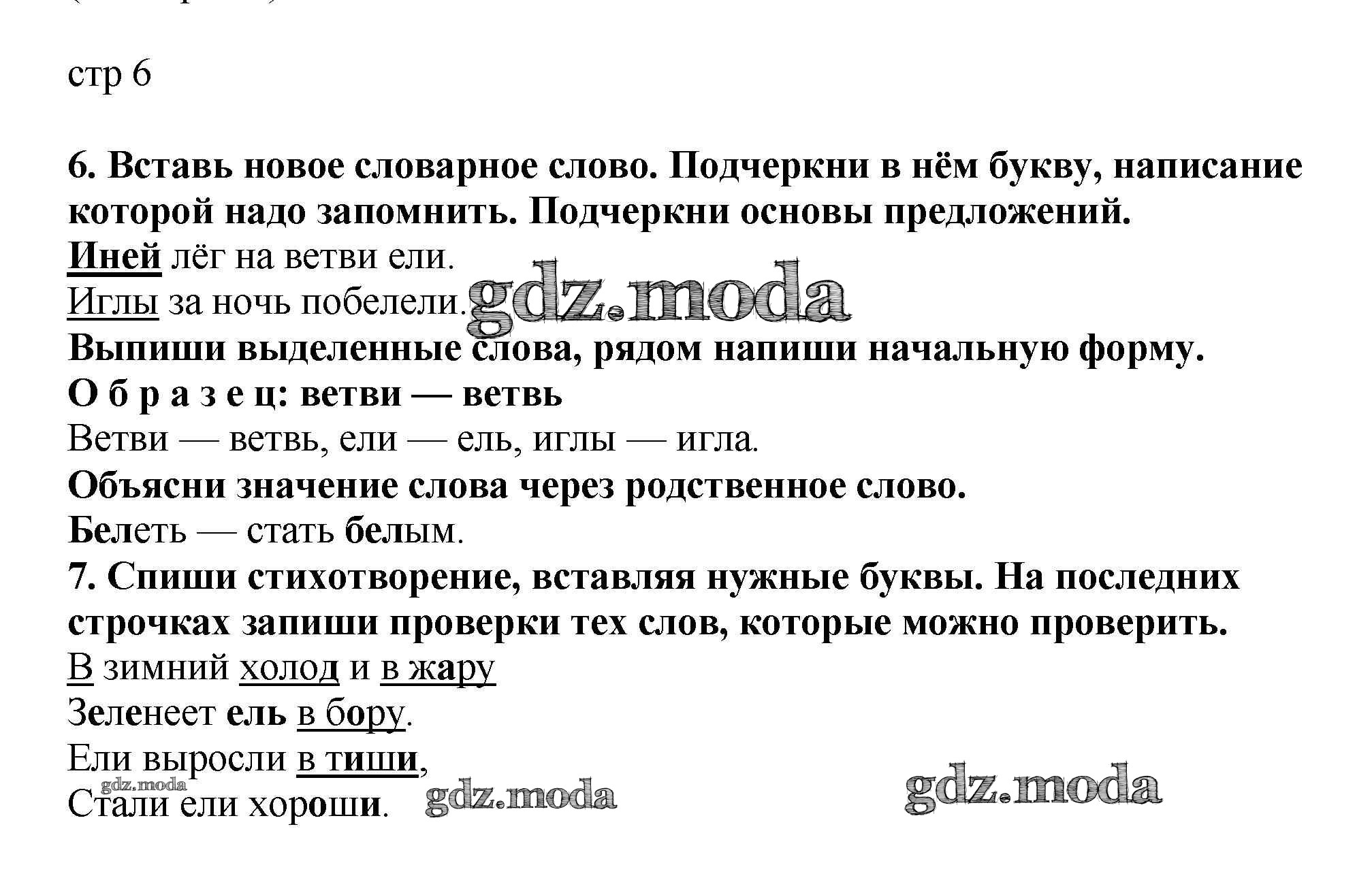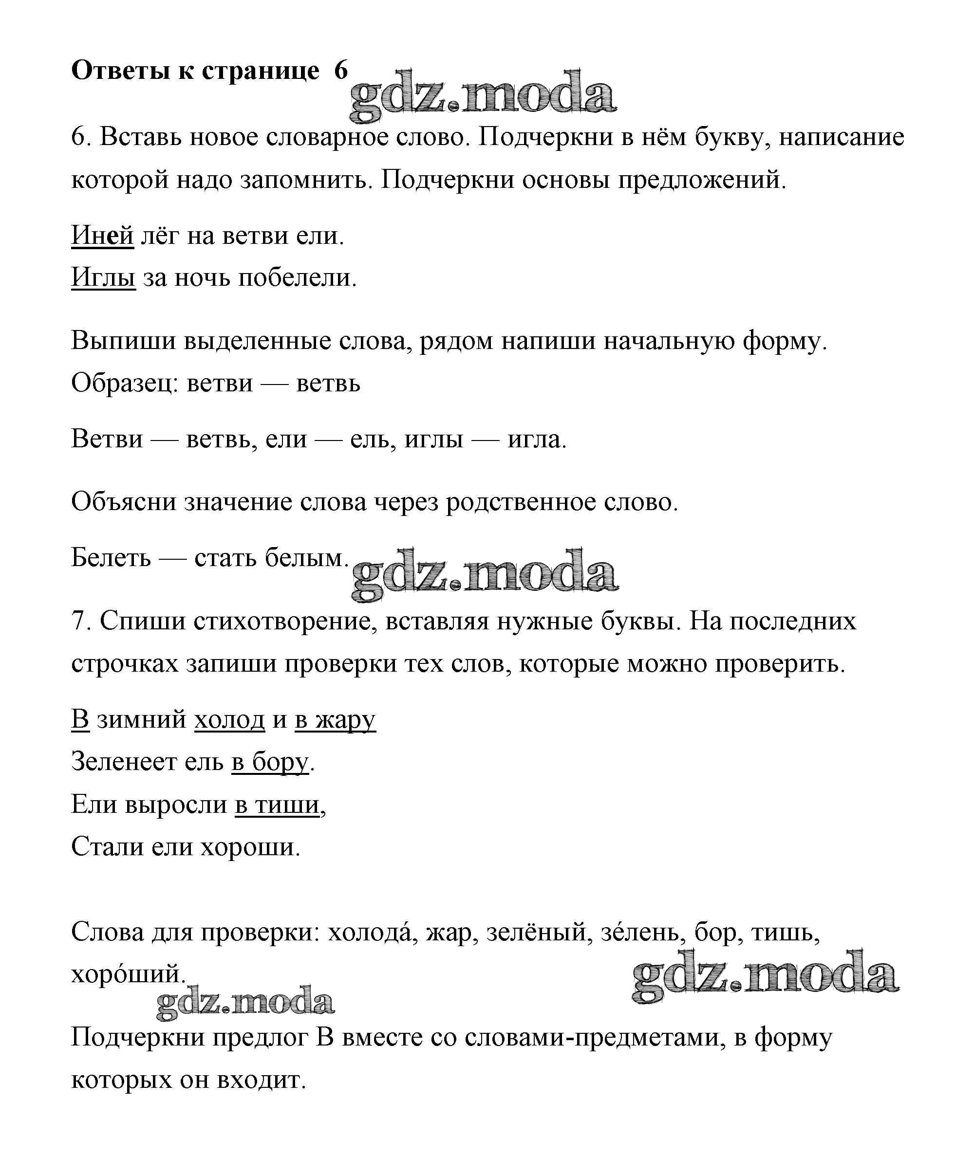 ОТВЕТ на задание № 6 Тетрадь для самостоятельной работы по Русскому языку 2 класс Байкова